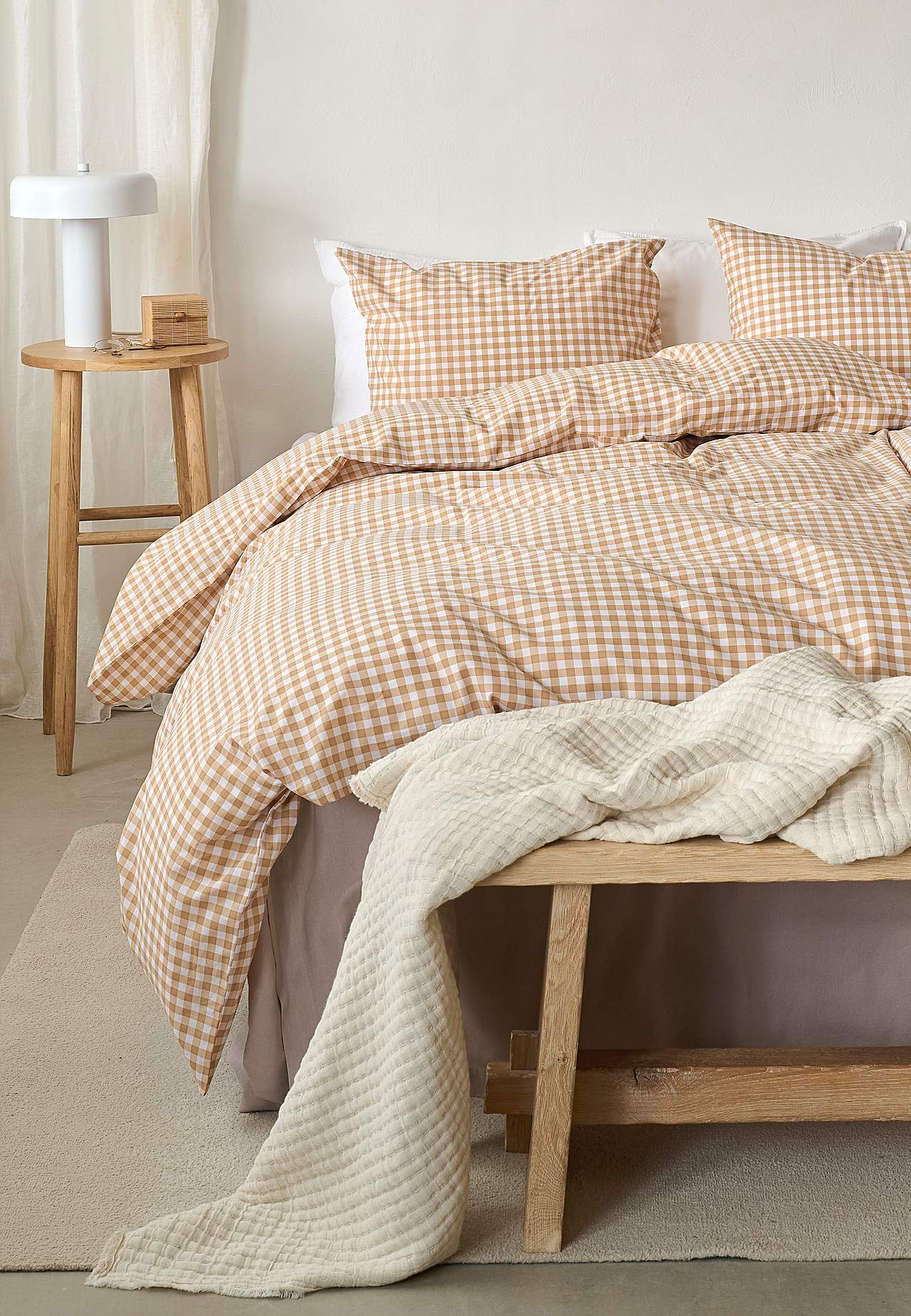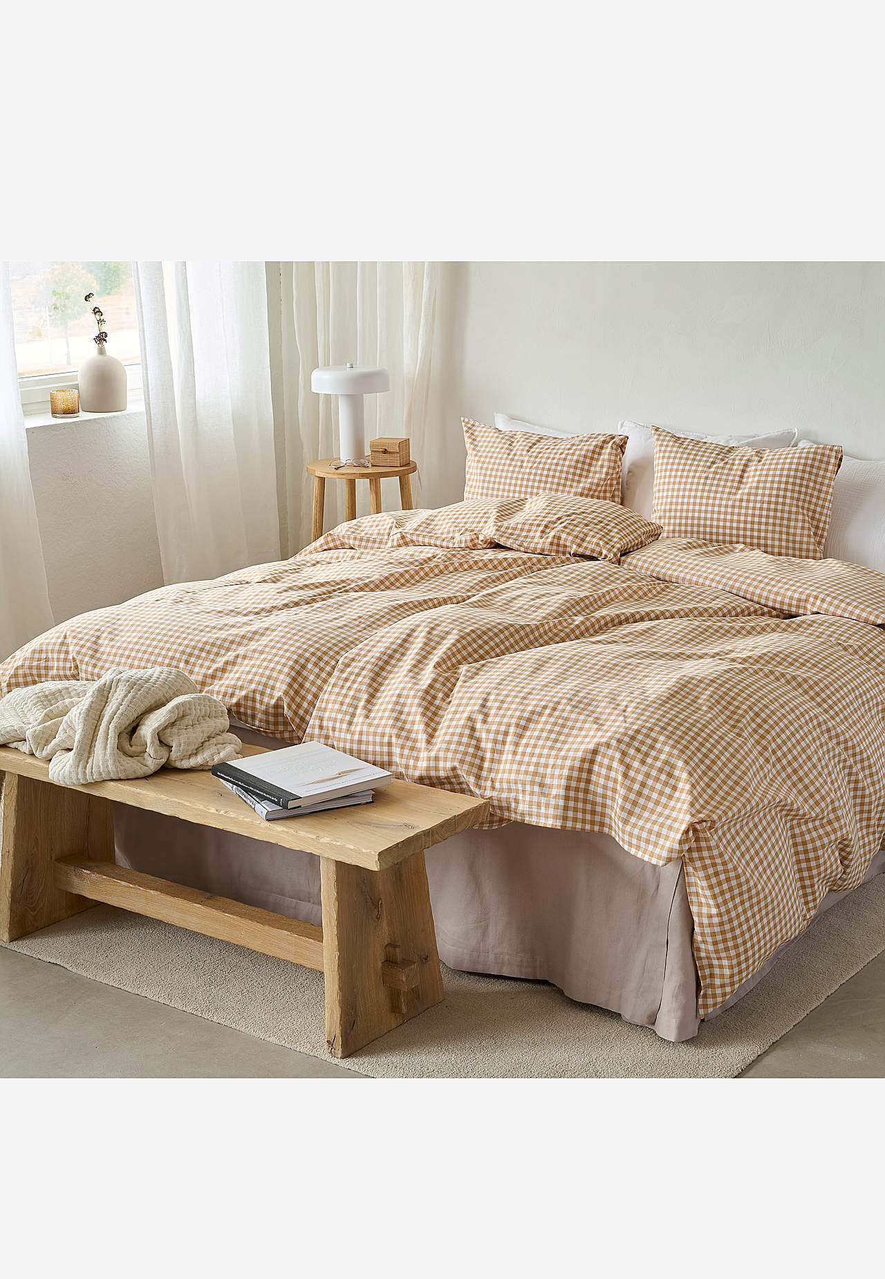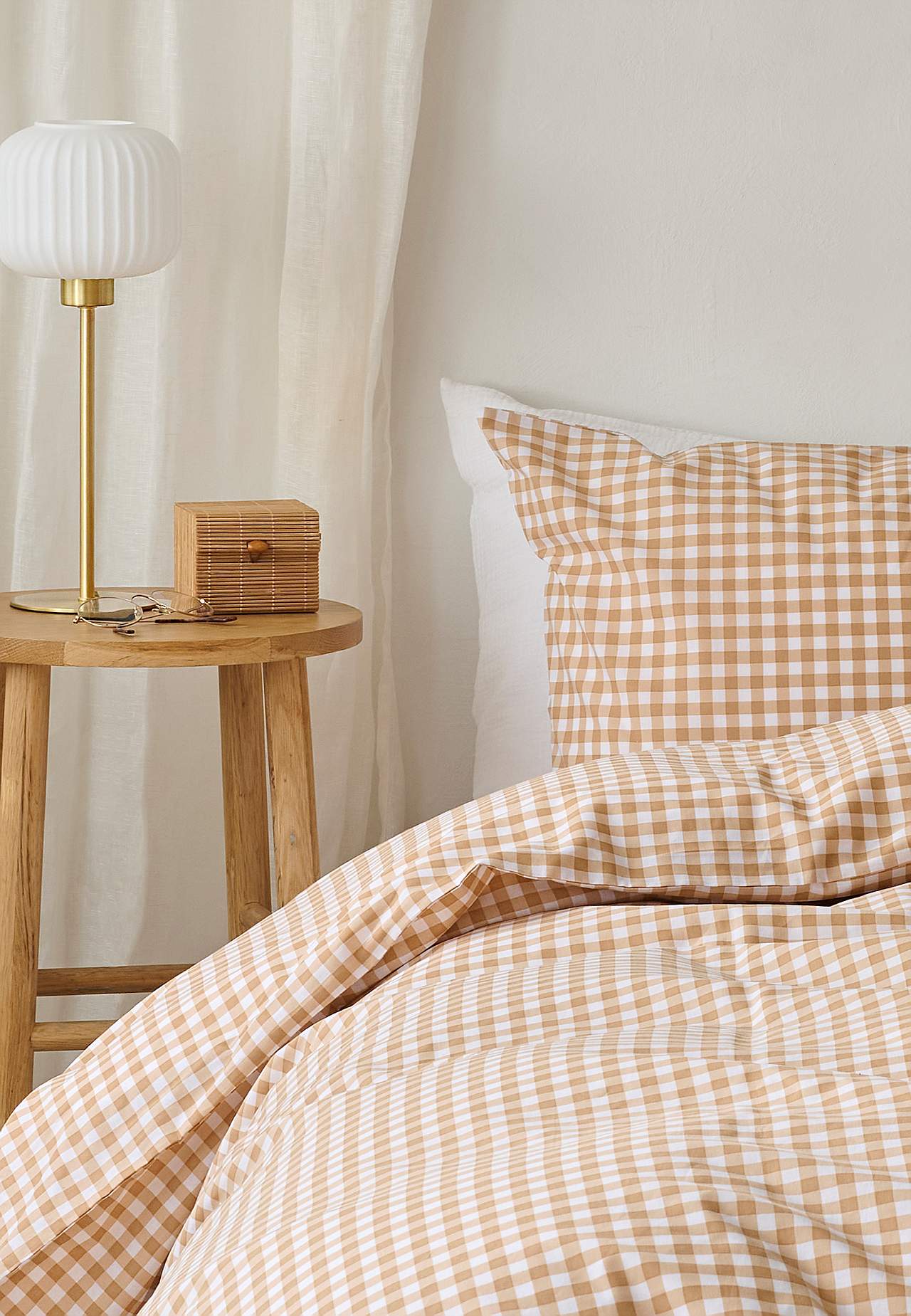 Sada povlečení z měkké a hezké bavlny. Drobně kostkovaný potisk. Stejný vzor v přední i zadní části. 2 kusy. Rozměr povlečení na přikrývku 150x210 cm, povlečení na polštář 50x60 cm. Povlak na přikrývku s otvory na ruce navrchu. Povlak na polštář s hotelovým zapínáním. Dostava tkaniny: 144.