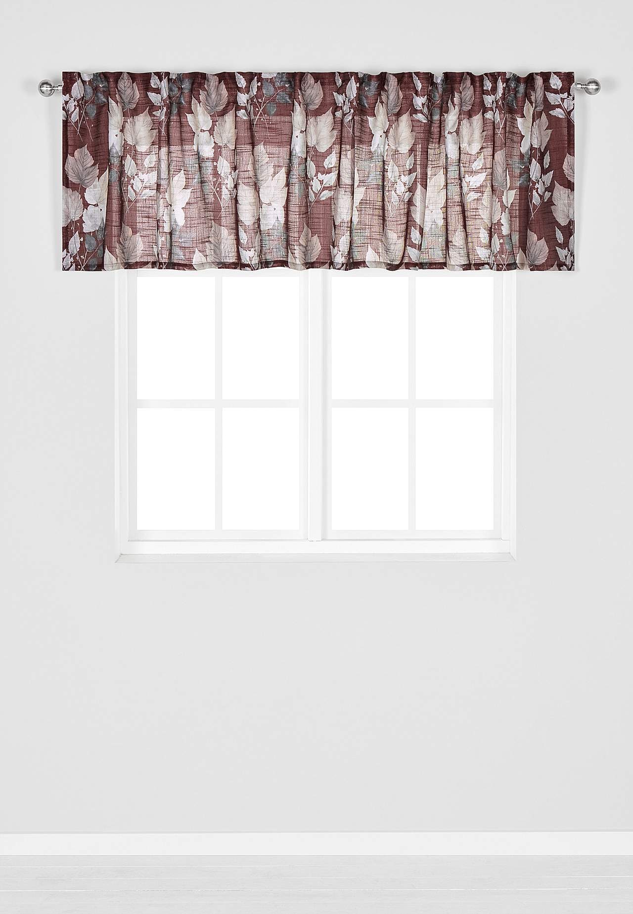 Záclonka s páskou v různé délce s vzorem listů