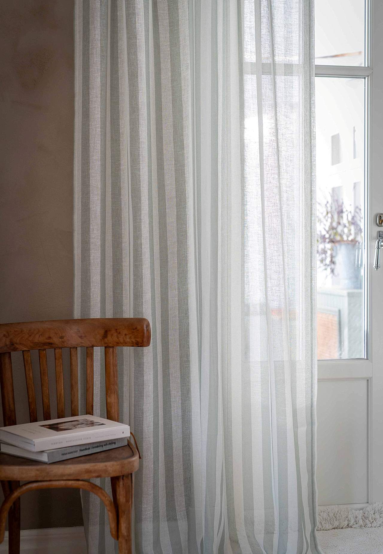 Průsvitný závěs s páskou v různé délce s pruhy 2 kusy