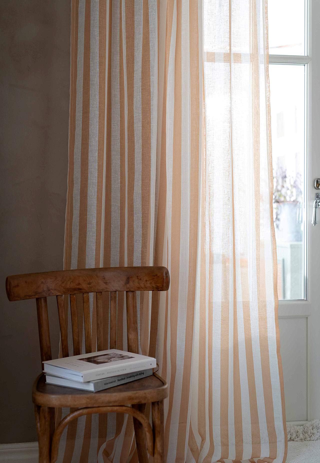 Průsvitný závěs s páskou v různé délce s pruhy 2 kusy