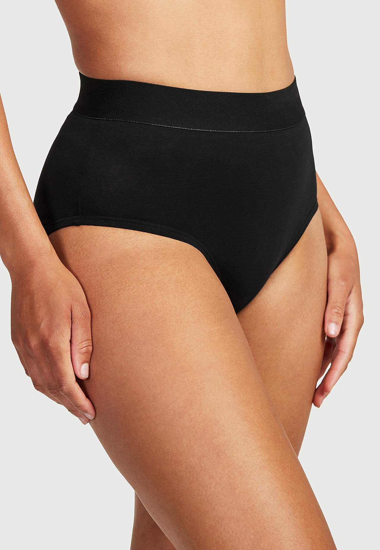 Kalhotky s vysokým pasem s měkkou gumou. Bavlněná podšívka v rozkroku.