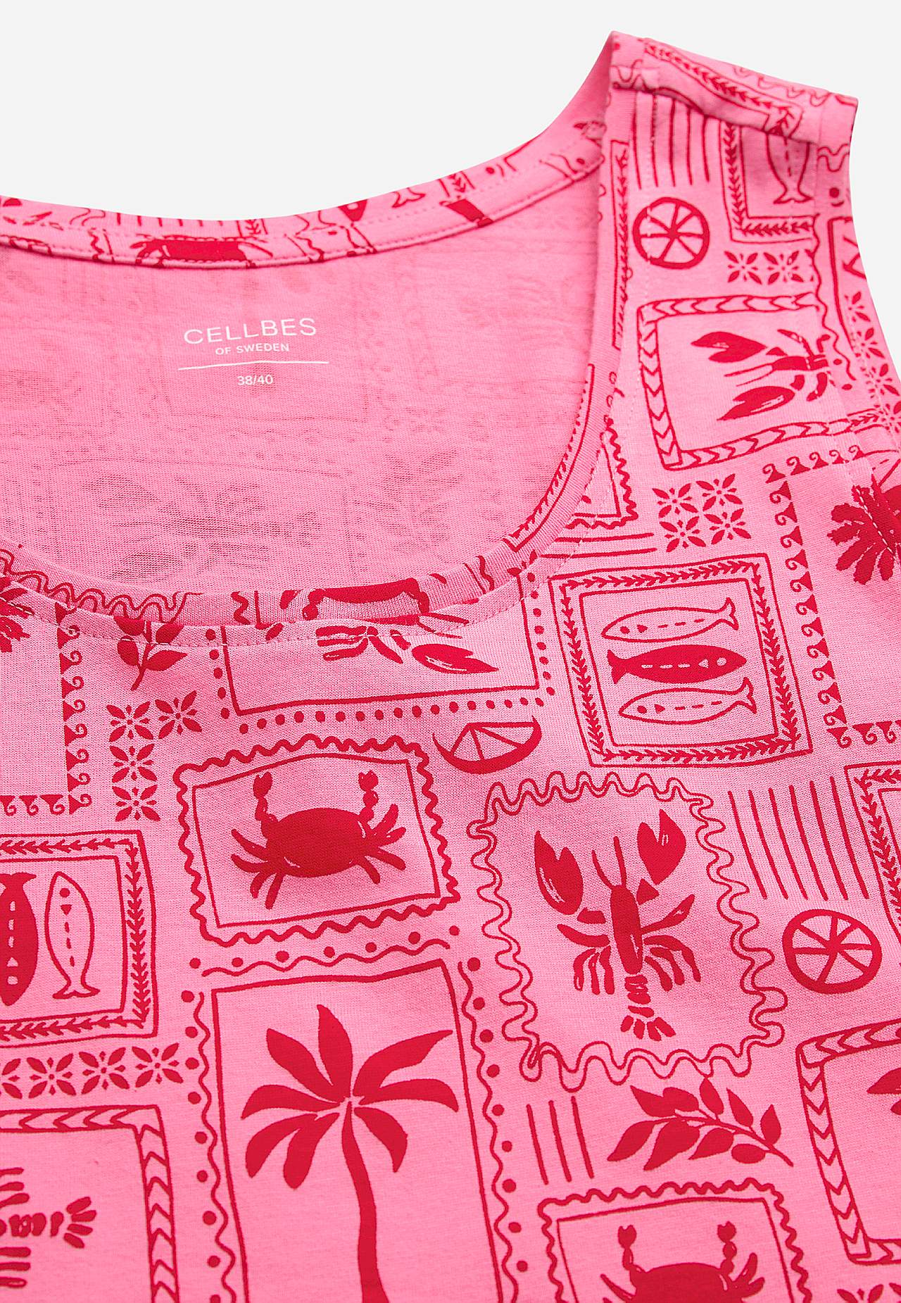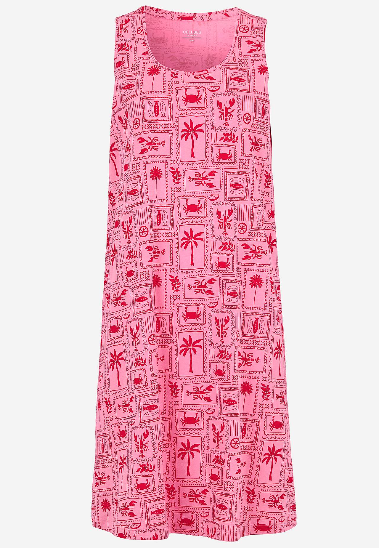 Krátká a vzorovaná noční košilka z měkké bio bavlny. Ležérní střih. Kulatý výstřih. Model bez rukávu. Rovný lem s rozparkem na stranách. Délka se odvíjí od velikosti, cca 94-101 cm vzadu od ramene.