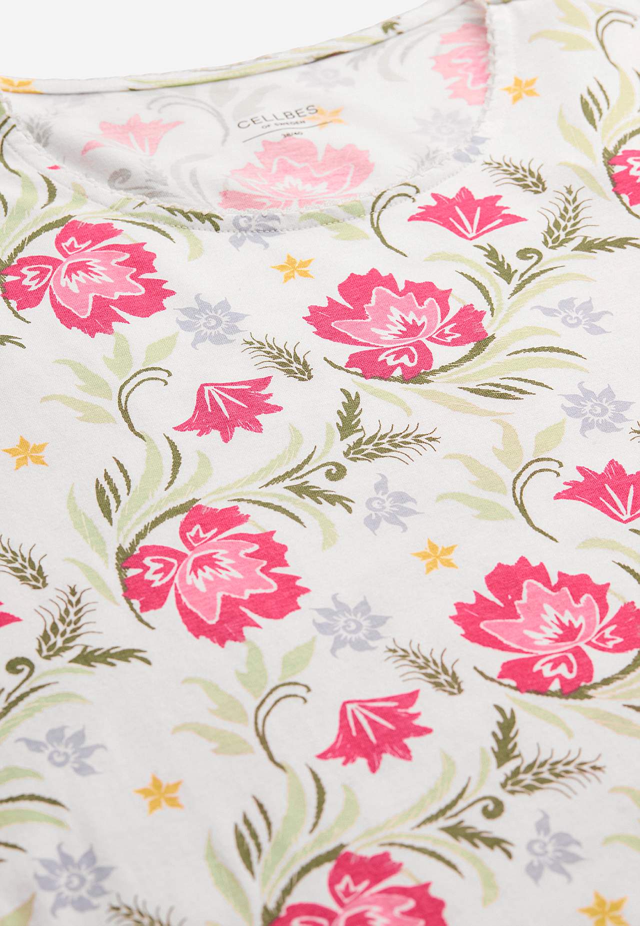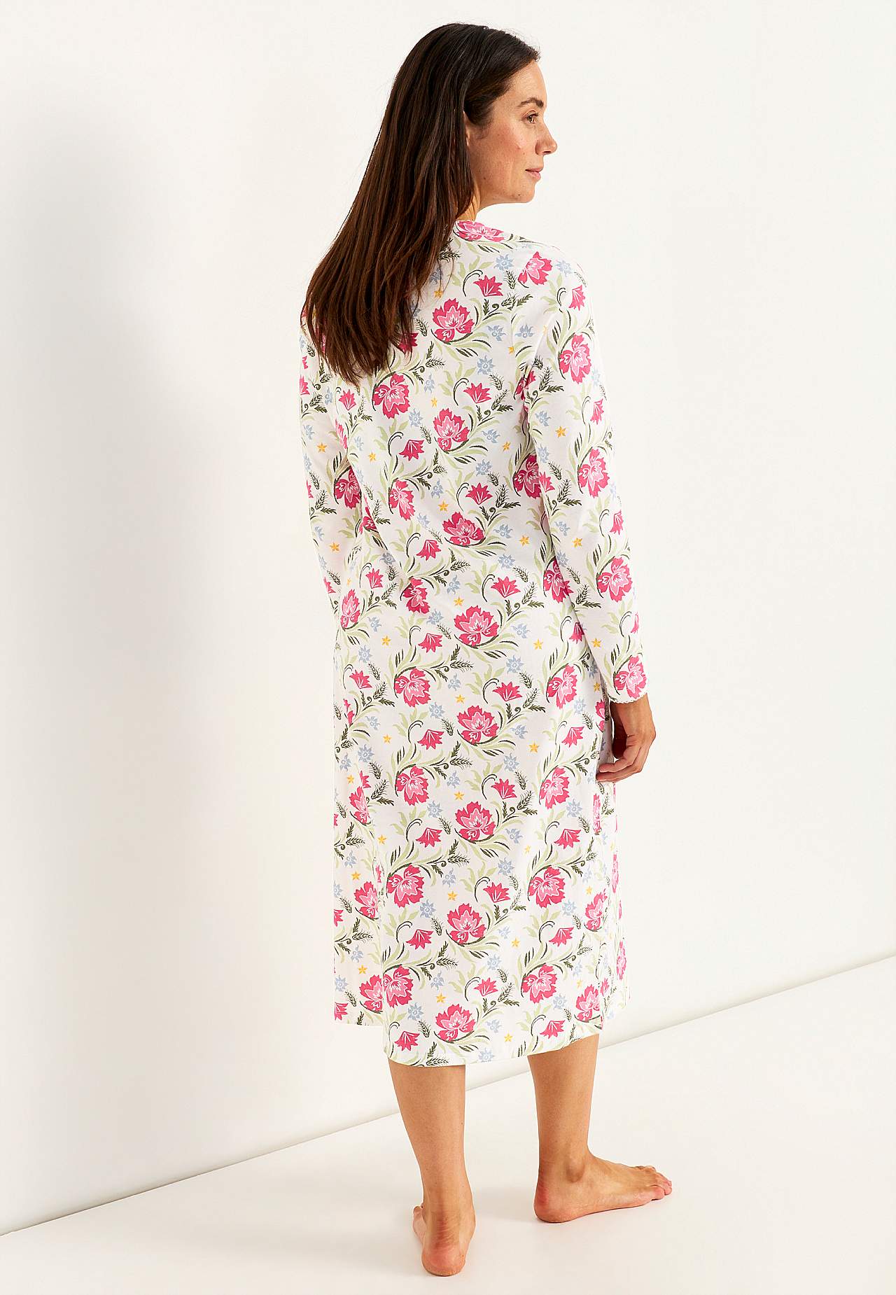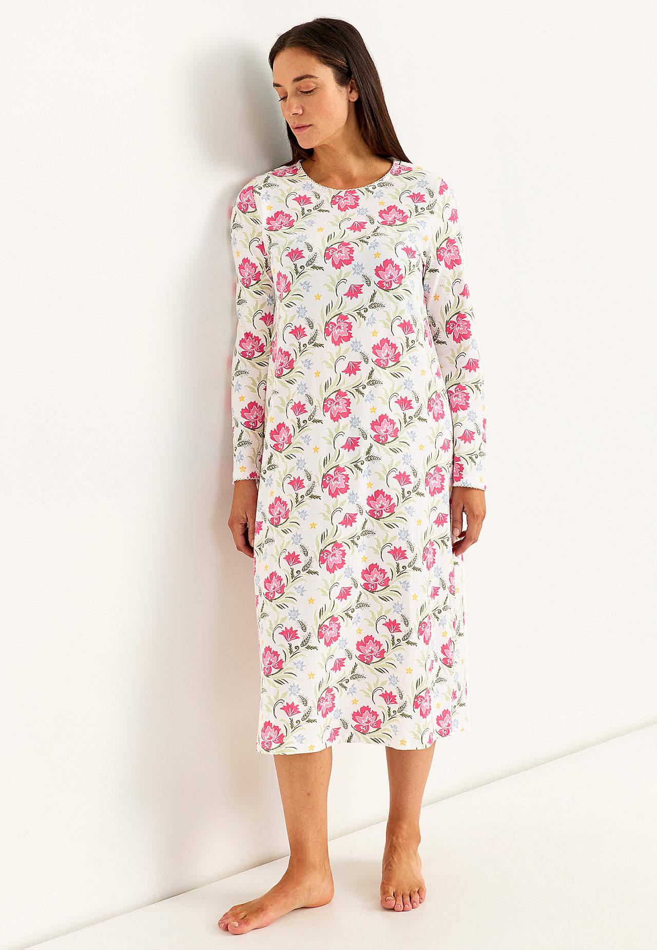Kulatý krk s hezkým krajkovým okrajem. Dlouhé rukávy s krajkovým okrajem na manžetách. Rovný lem. Délka od ramene cca. 123 cm ve všech velikostech.