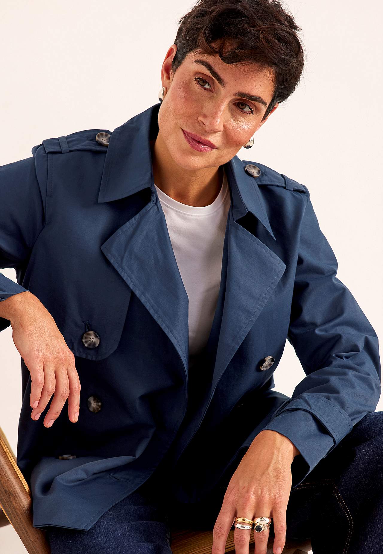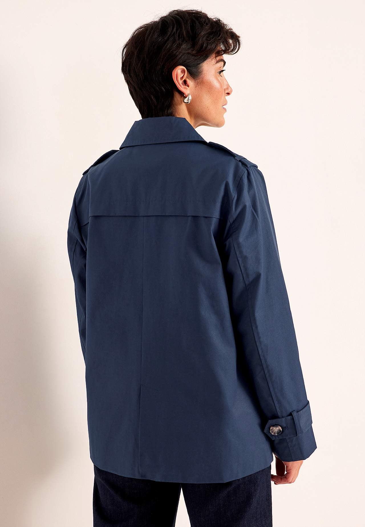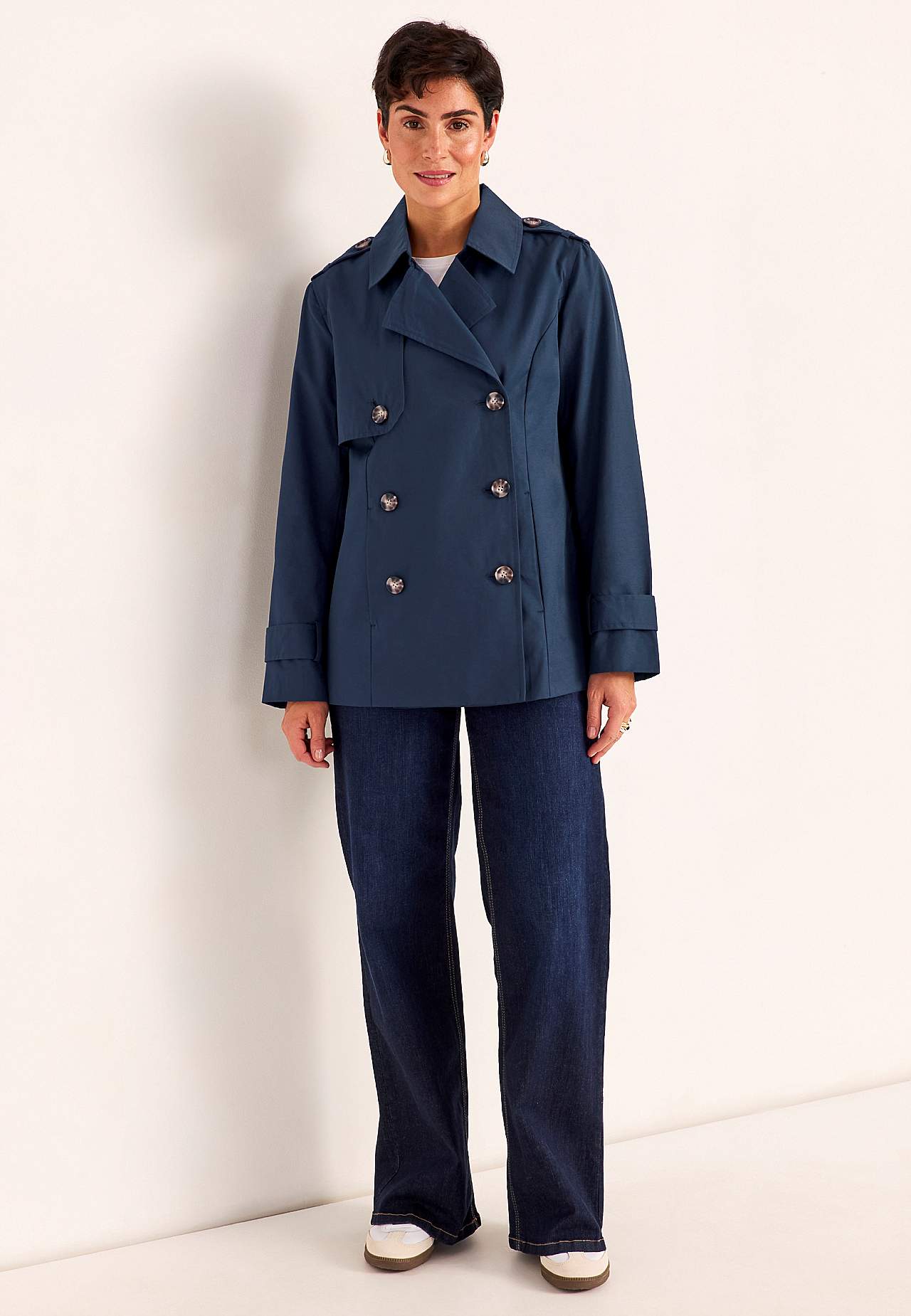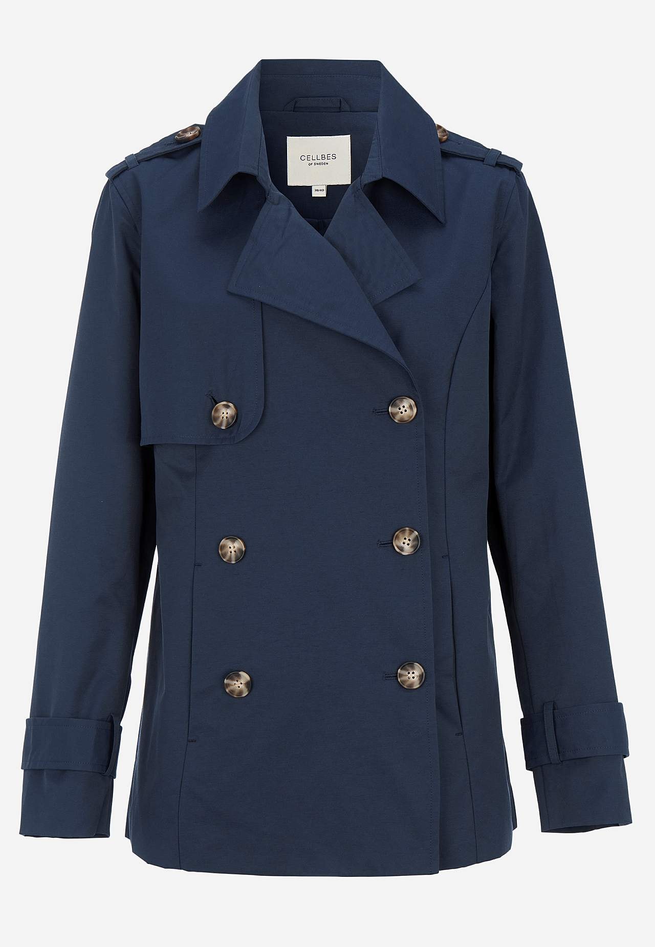 Dvouřadý a plně podšitý trenčkot s límcem. Stylový jarní kabát, který bude skvělý i na podzim. Délka zad se odvíjí od velikosti, cca 73-85 cm.