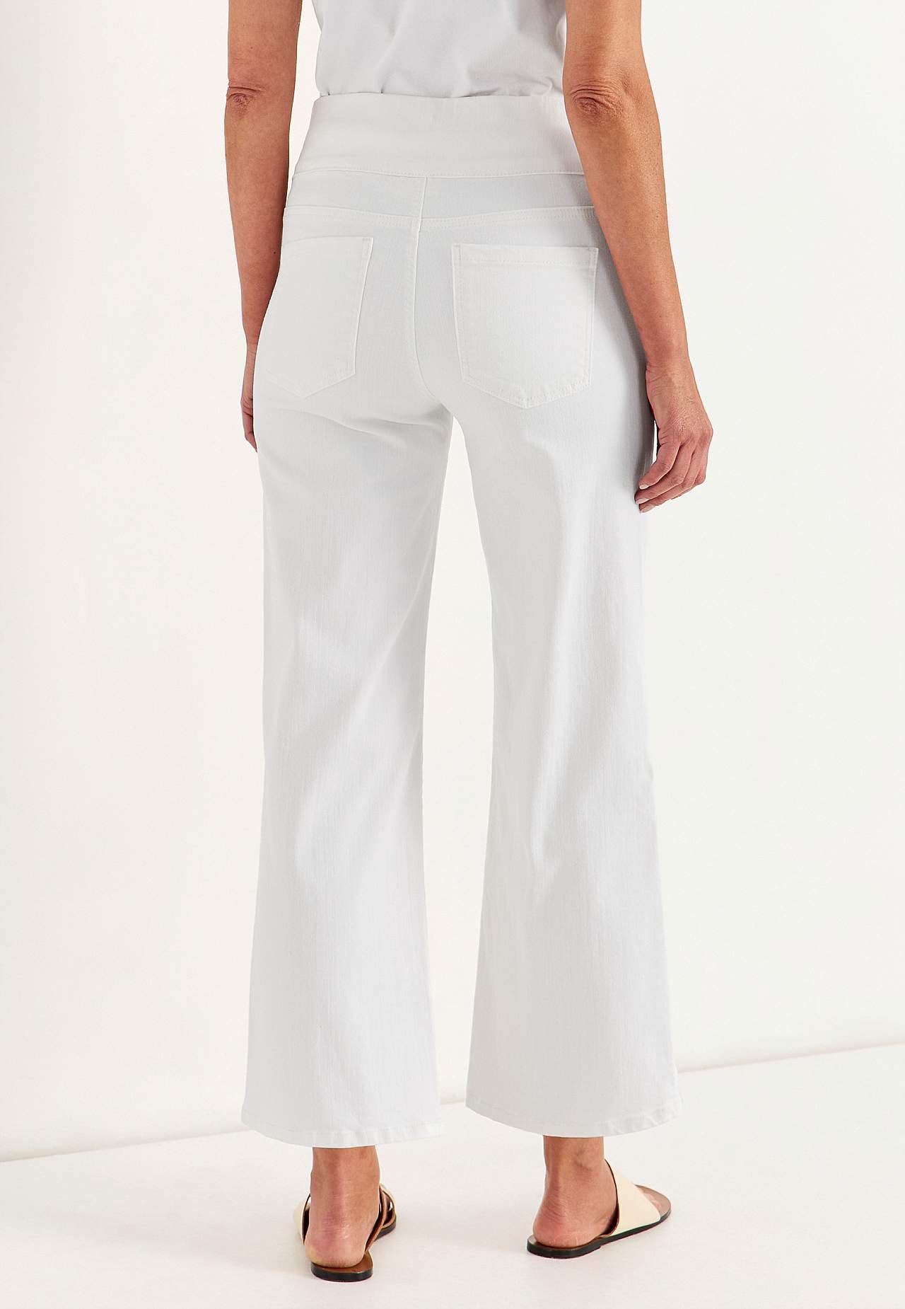 Pohodlné a extra elastické džíny. Ležérní střih se širokými nohavicemi. Vysoký pas se širokým a měkkým elastickým pásem. Našitý dekorační zip. Falešné kapsy vpředu. Pravé kapsy vzadu. Vnitřní délka nohavice cca 66 cm ve všech velikostech. Střih přední části se liší podle velikosti: přibližně 72-84 cm.