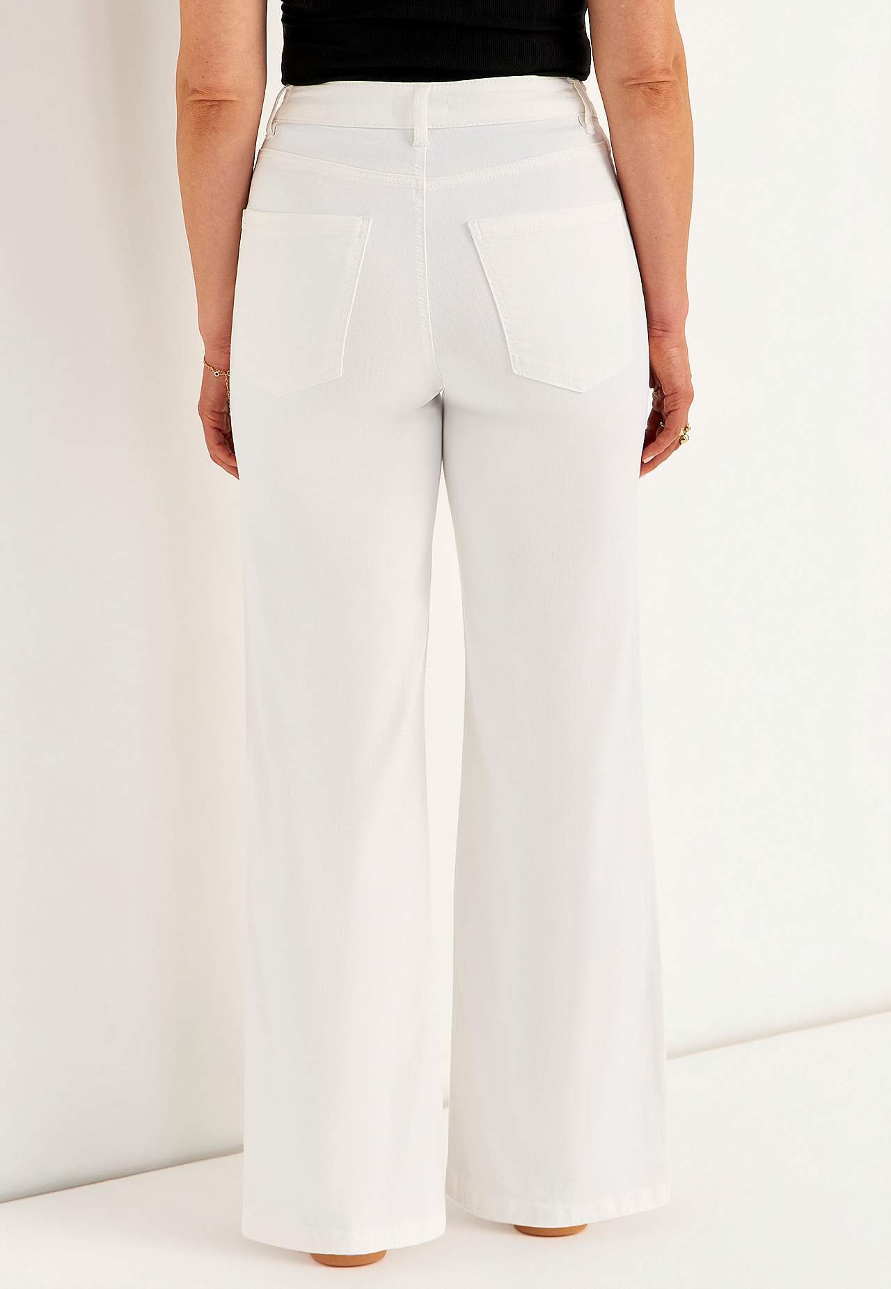Džíny s 5 kapsami. Vysoký pas. Rovný design. Široké nohavice. Zip s knoflíkem. Pas s poutky na pásek. Vnitřní délka nohavice cca 80 cm ve všech velikostech. Střih přední části se liší podle velikosti: přibližně 72-84 cm. K dispozici také s vnitřní délkou nohavice 85 cm, viz položka č. 700142.