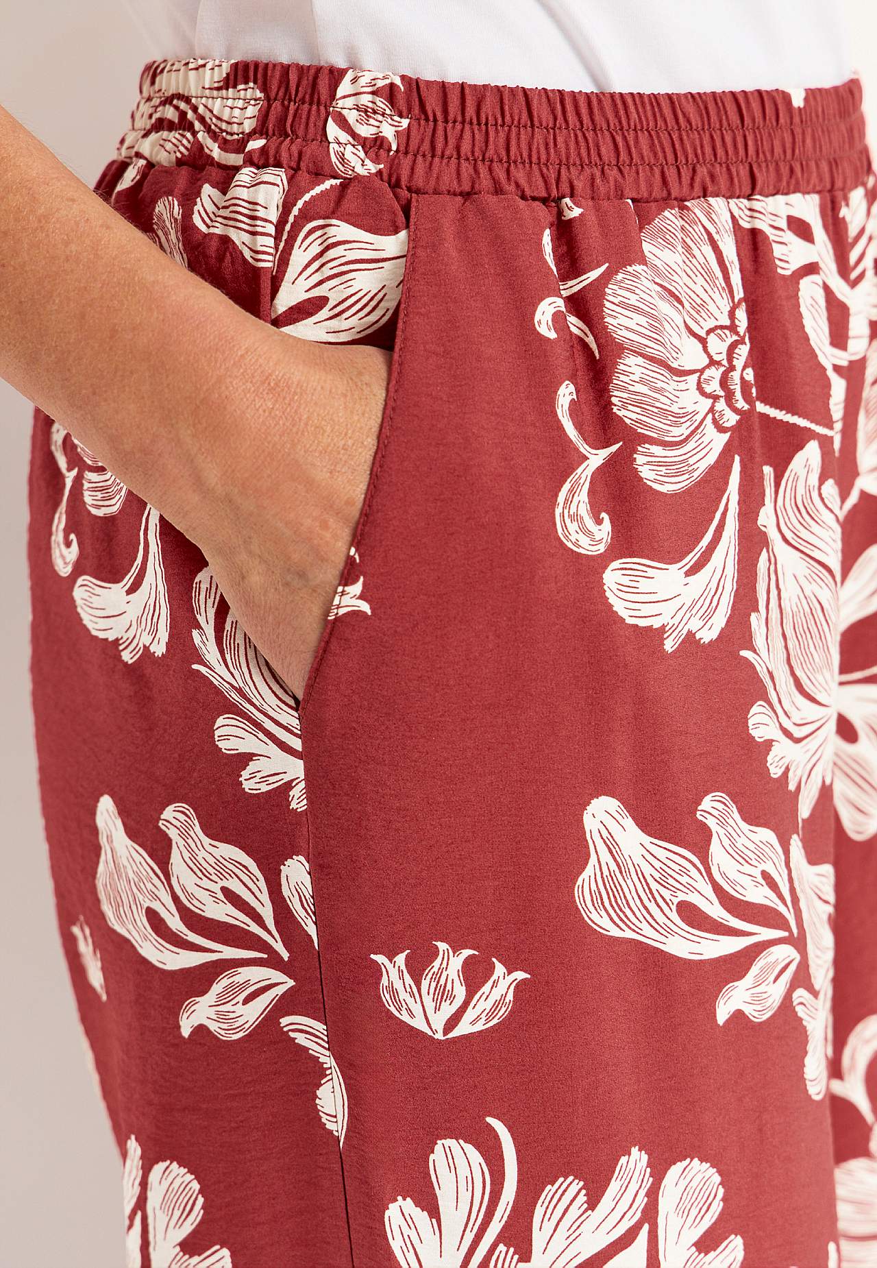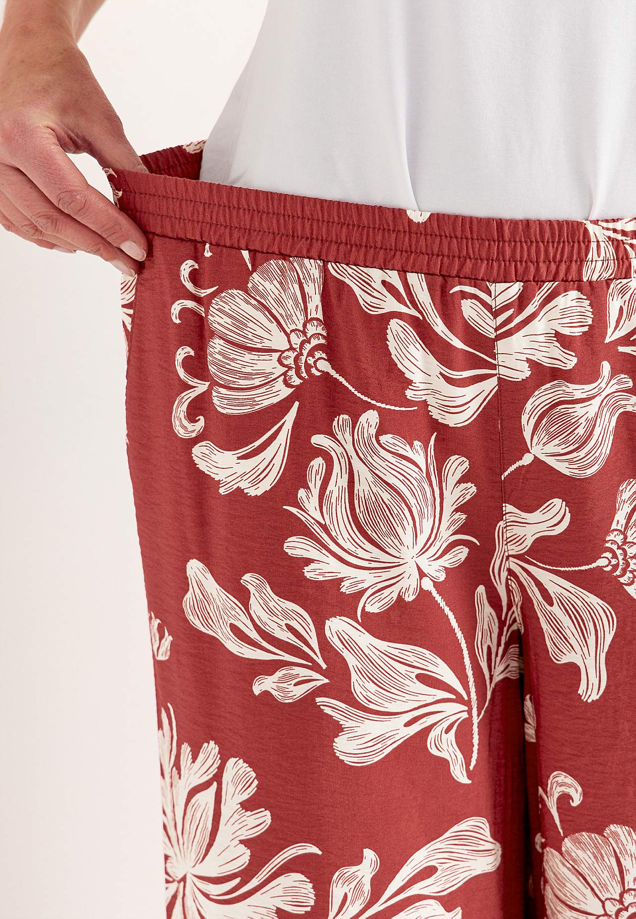 Tkané kalhoty z půvadného směsi viskózy s lehce lesklou texturovanou tkanou tkaninou. Hezké a těžké řasení a chladicí dotyk. Volný střih se širokými a rovnými nohavicemi. Běžný pas s pohodlnou gumou. Šikmé kapsy. Vnitřní délka nohavice cca 78 cm ve všech velikostech. Střih přední části se liší podle velikosti: přibližně 72... Přečtěte si více