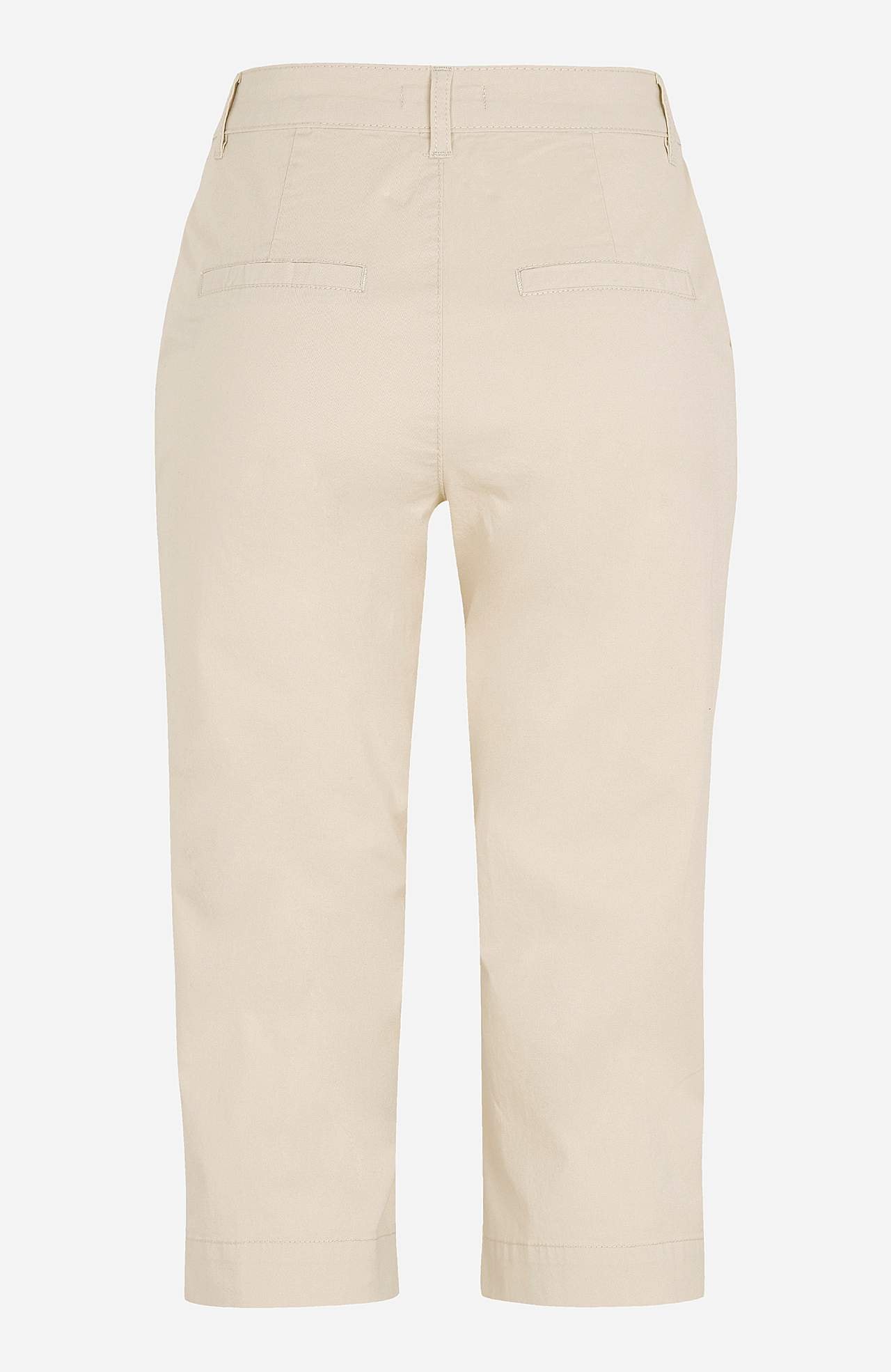 Capri kalhoty s normálním pasem s rovným designem. Kapsy na straně a ozdobné kapsy vzadu. Vnitřní délka nohavice cca 52 cm ve všech velikostech.