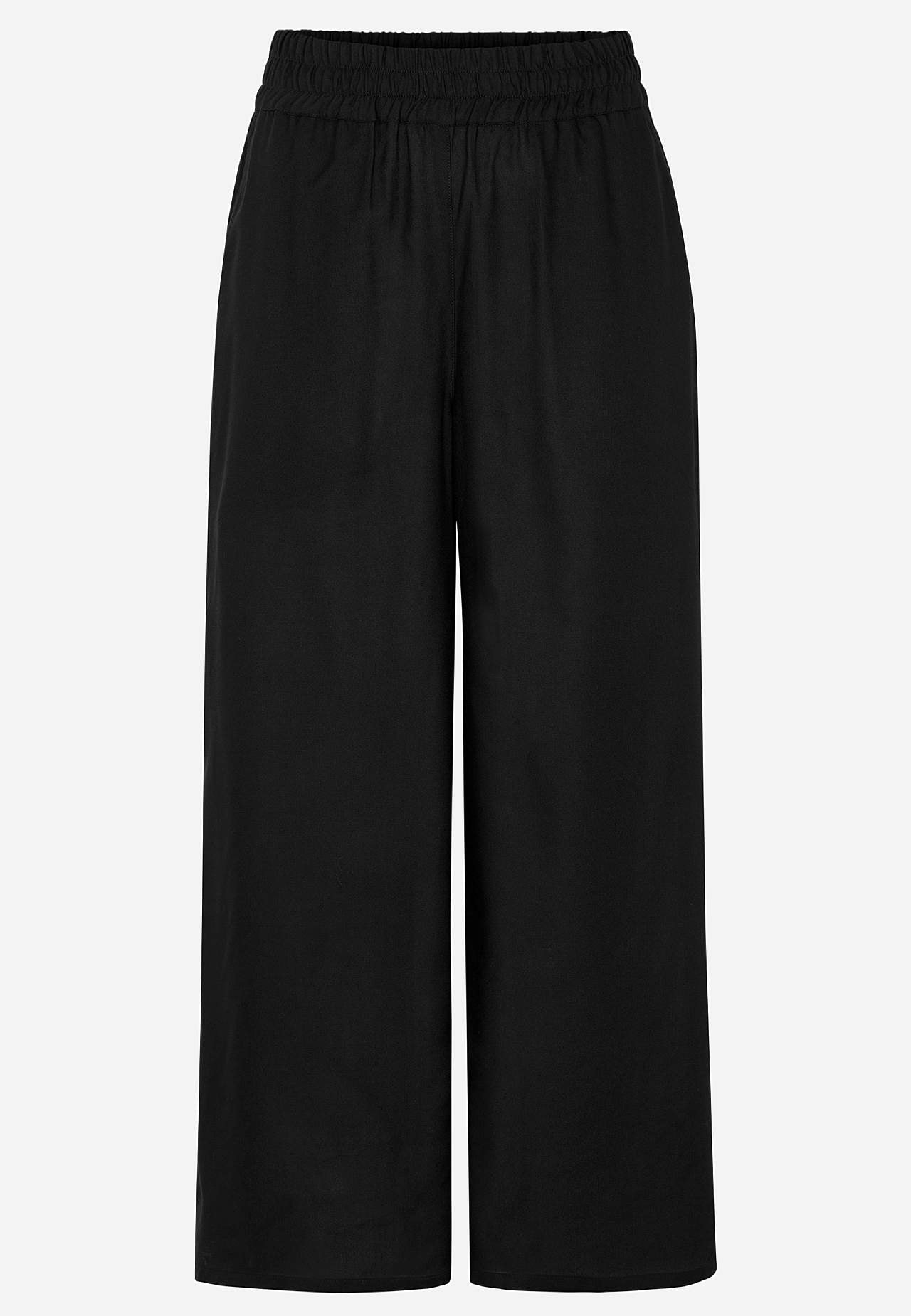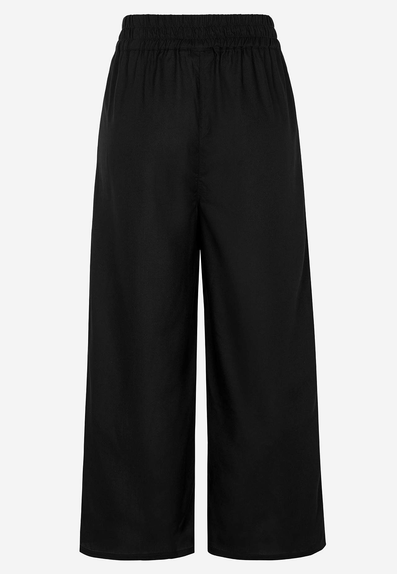 Tkané a vzdušné cullotes kalhoty. Hladká, pružná a chladicí viskóza. Široký a měkký elastický pás. Šikmé kapsy vpředu. Vnitřní délka nohavice cca 60 cm ve všech velikostech. Kombinujte s 702443.