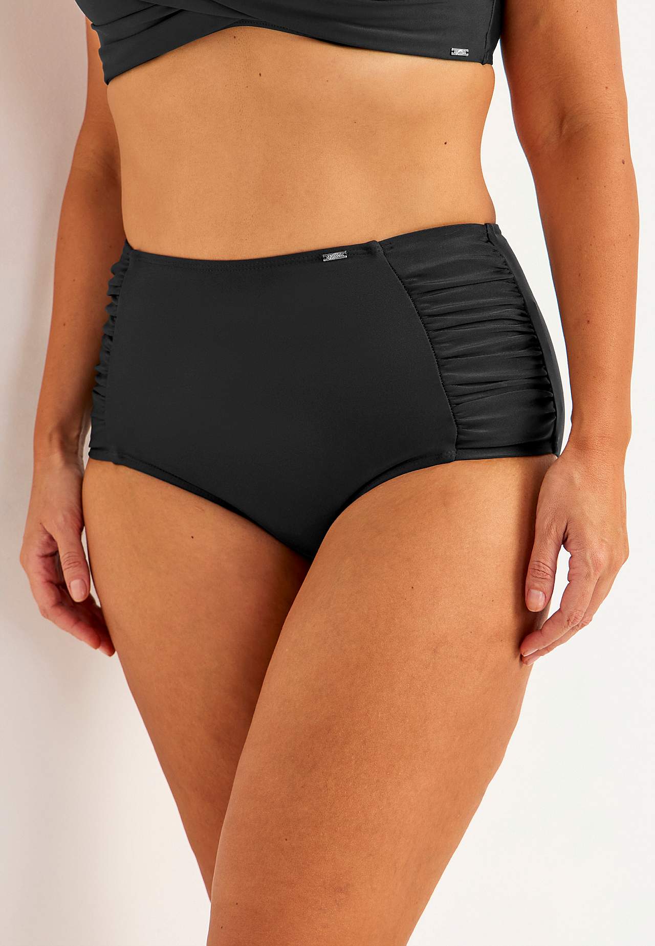 Plně podšité bikiny kalhotky s vysokým pasem. Stylový model s nabraným řasením na stranách pro lichotivou siluetu. Stylový a čistý spodní díl bikin z recyklovaného polyesteru. Vysoký pas. Dekorativní a nabrané řasení na stranách. Plně podšitý vnitřek.