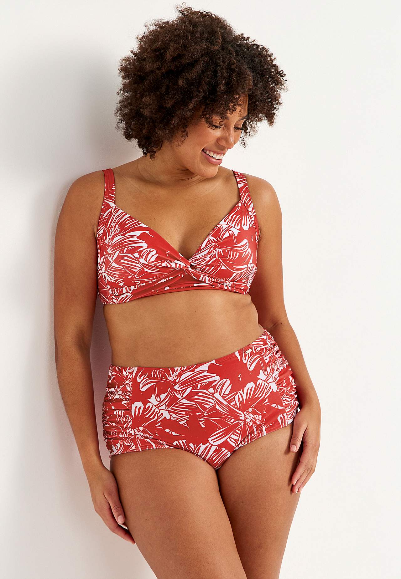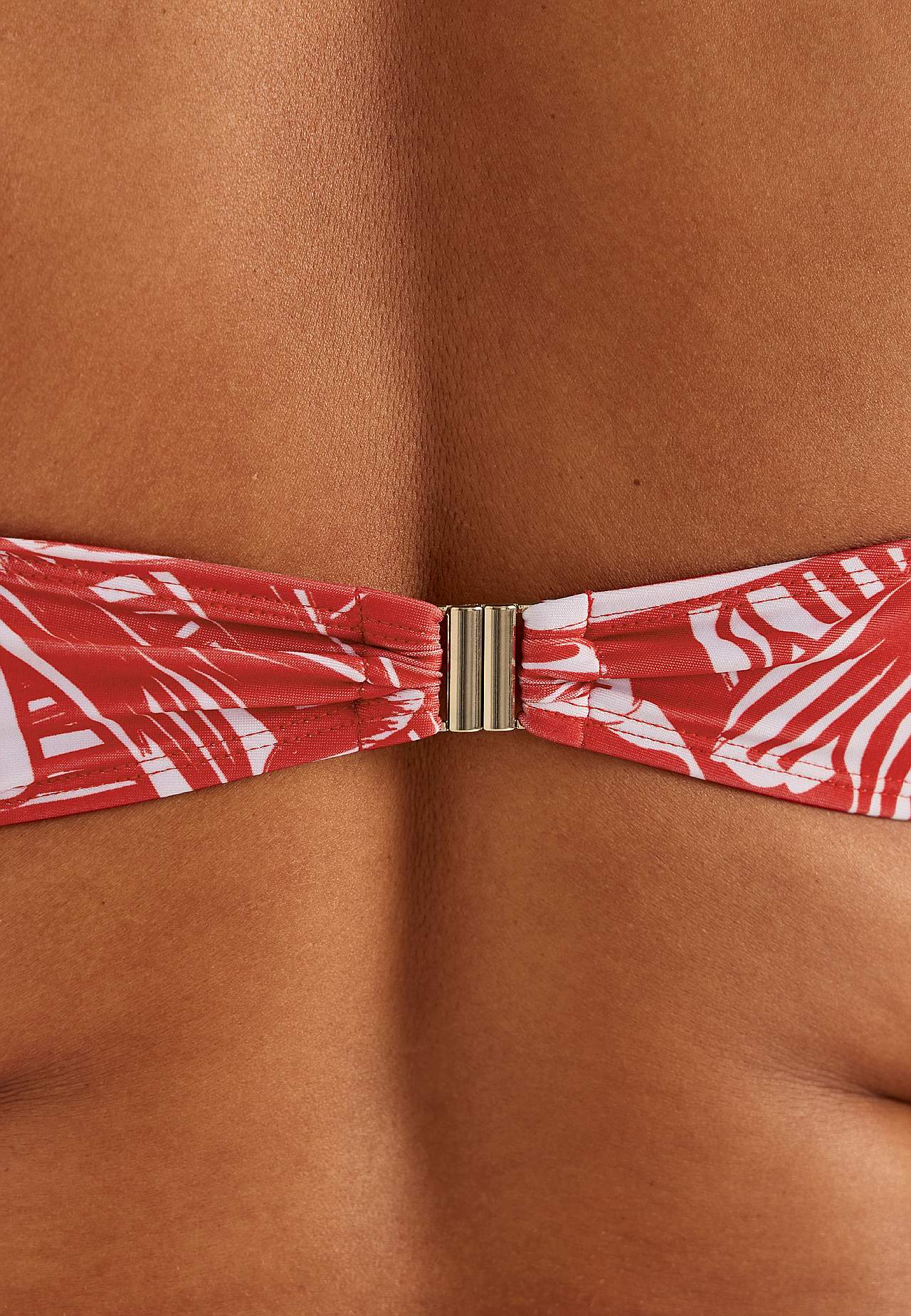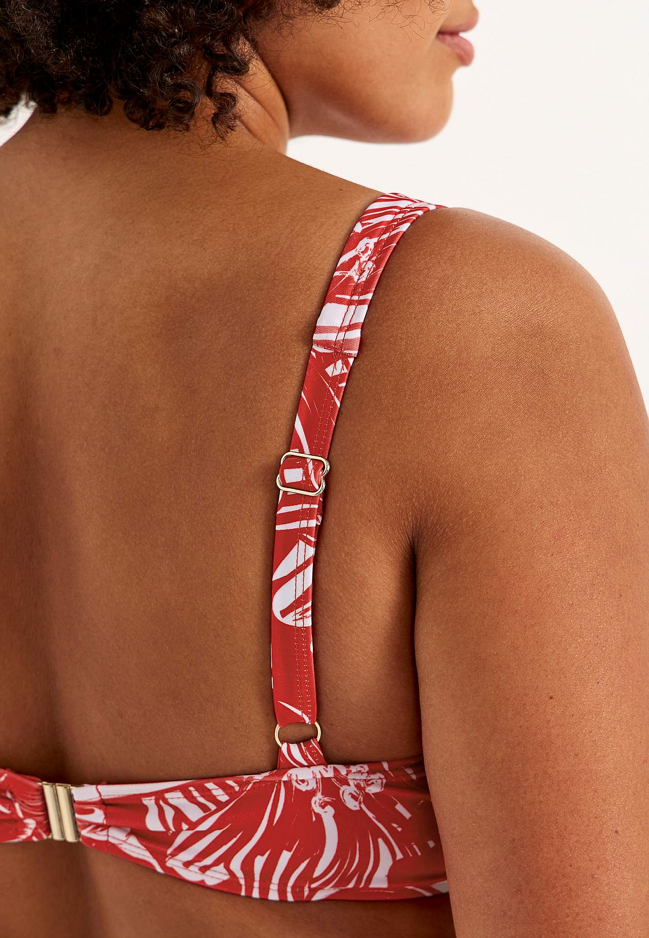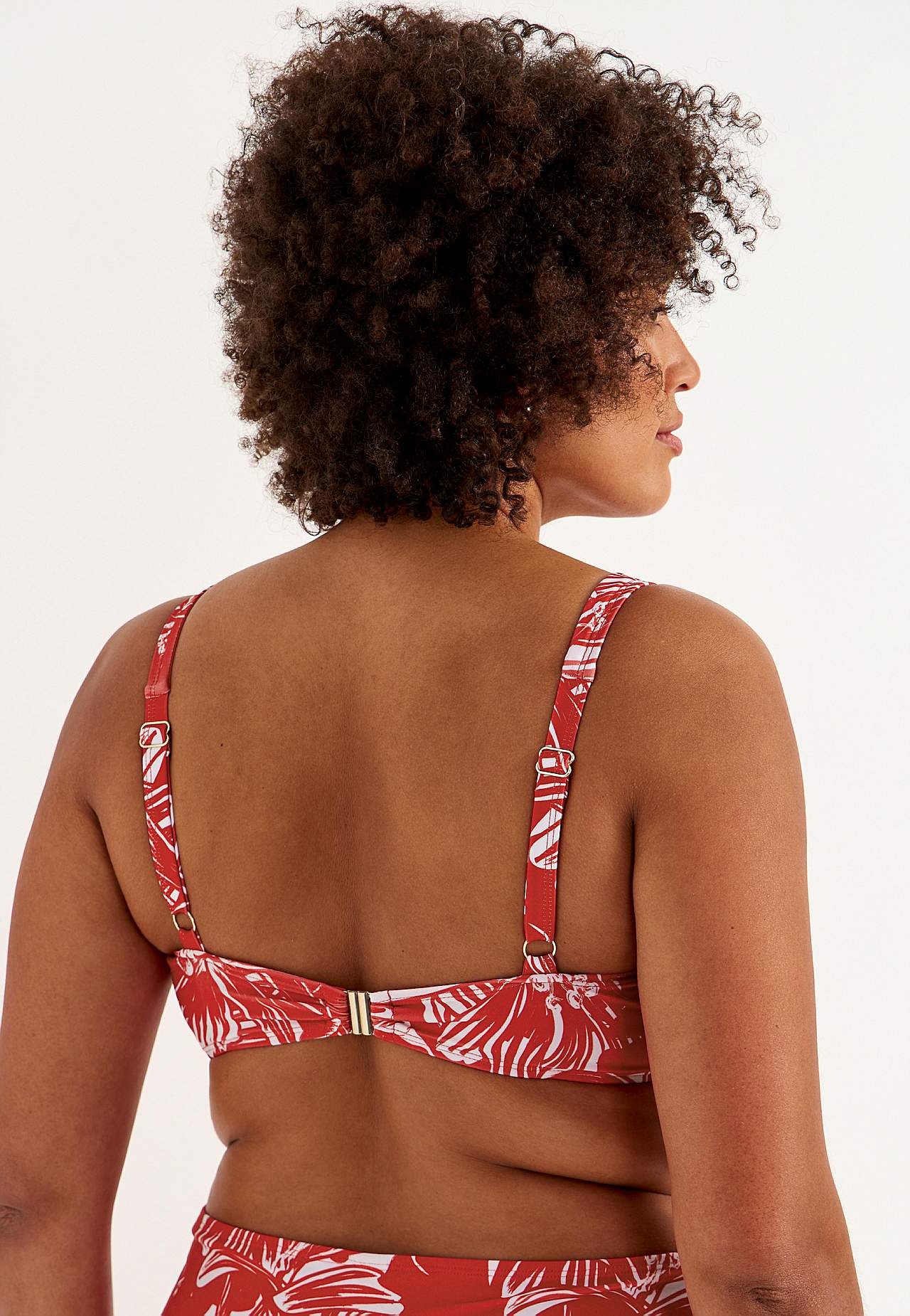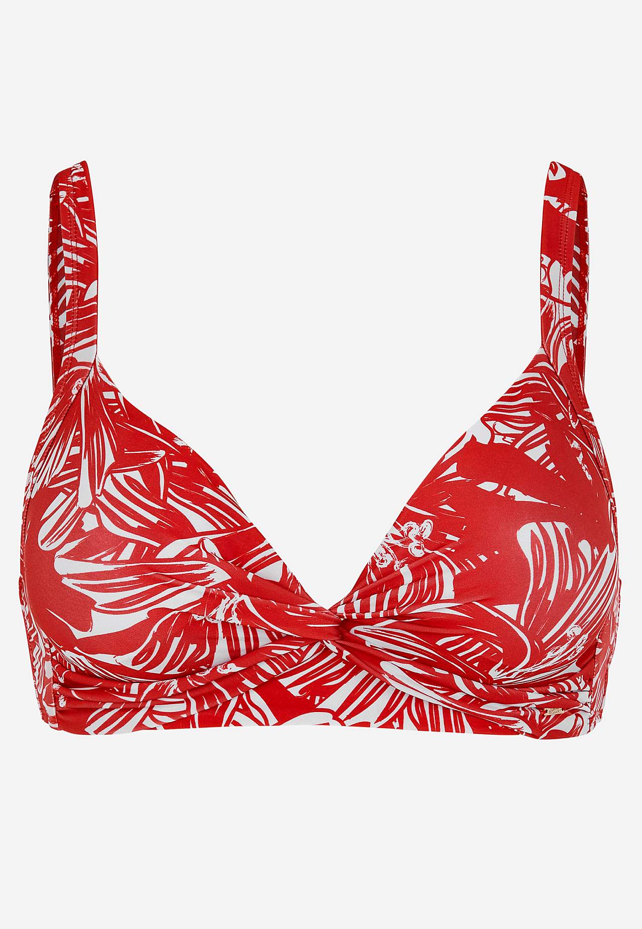 Měkký vršek plavek bez kostice s podpěrnou tyčkou na stranách pro dodatečnou podporu. Bikiny z recyklovaného polyesteru. Model s květinovým vzorem. Košíček se snímatelnou vycpávkou. Nastavitelná ramínka pro nejlepší pocit z nošení. Jednoduše zapínatelné kovové zapínání vzadu.
