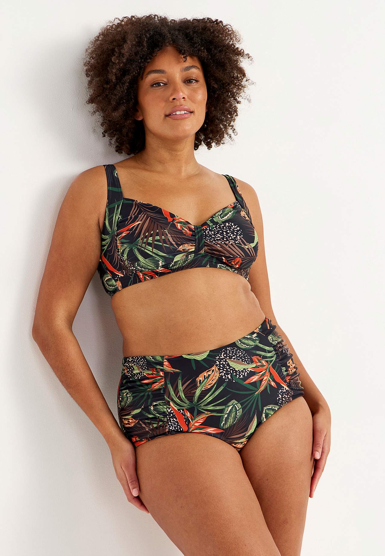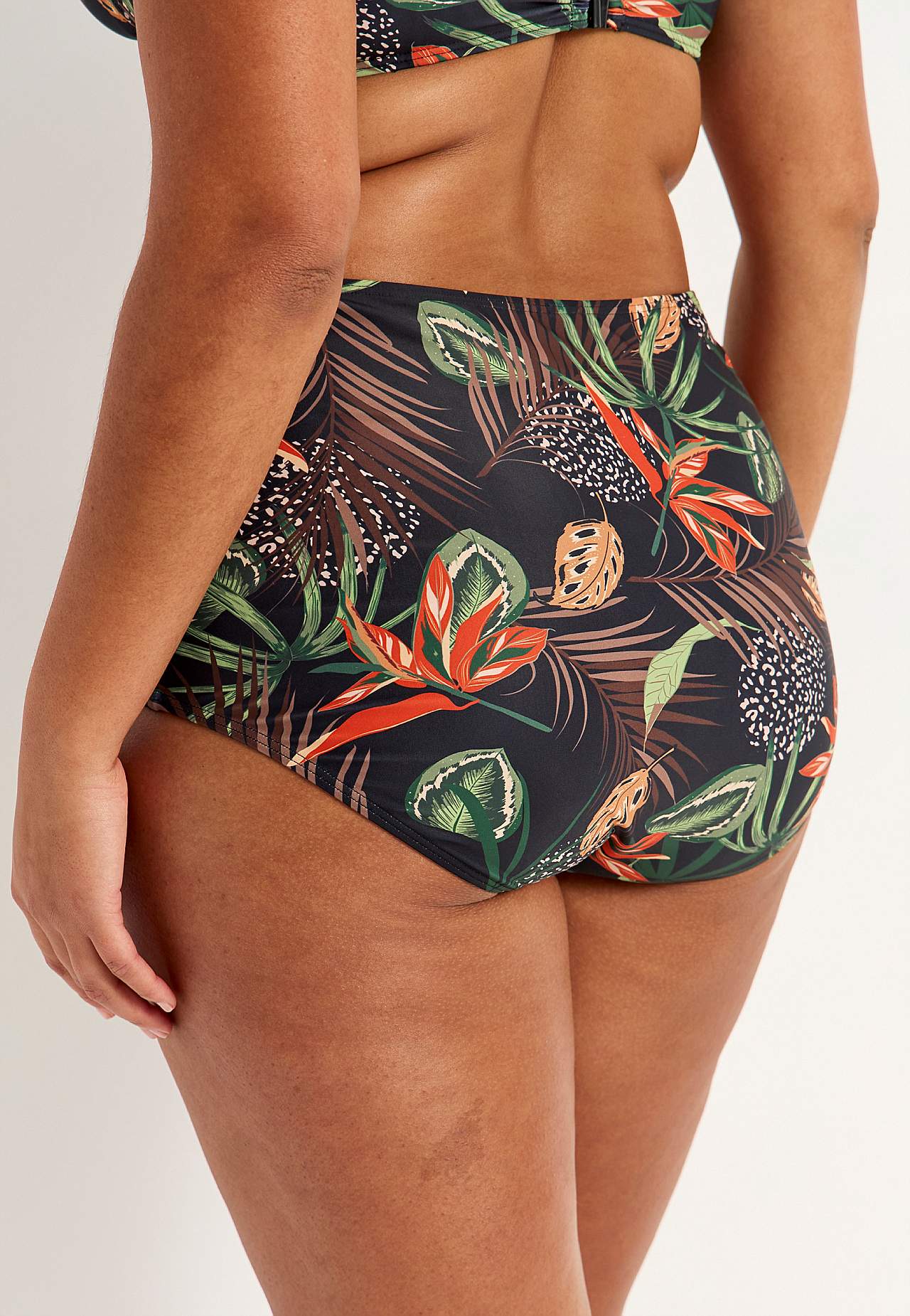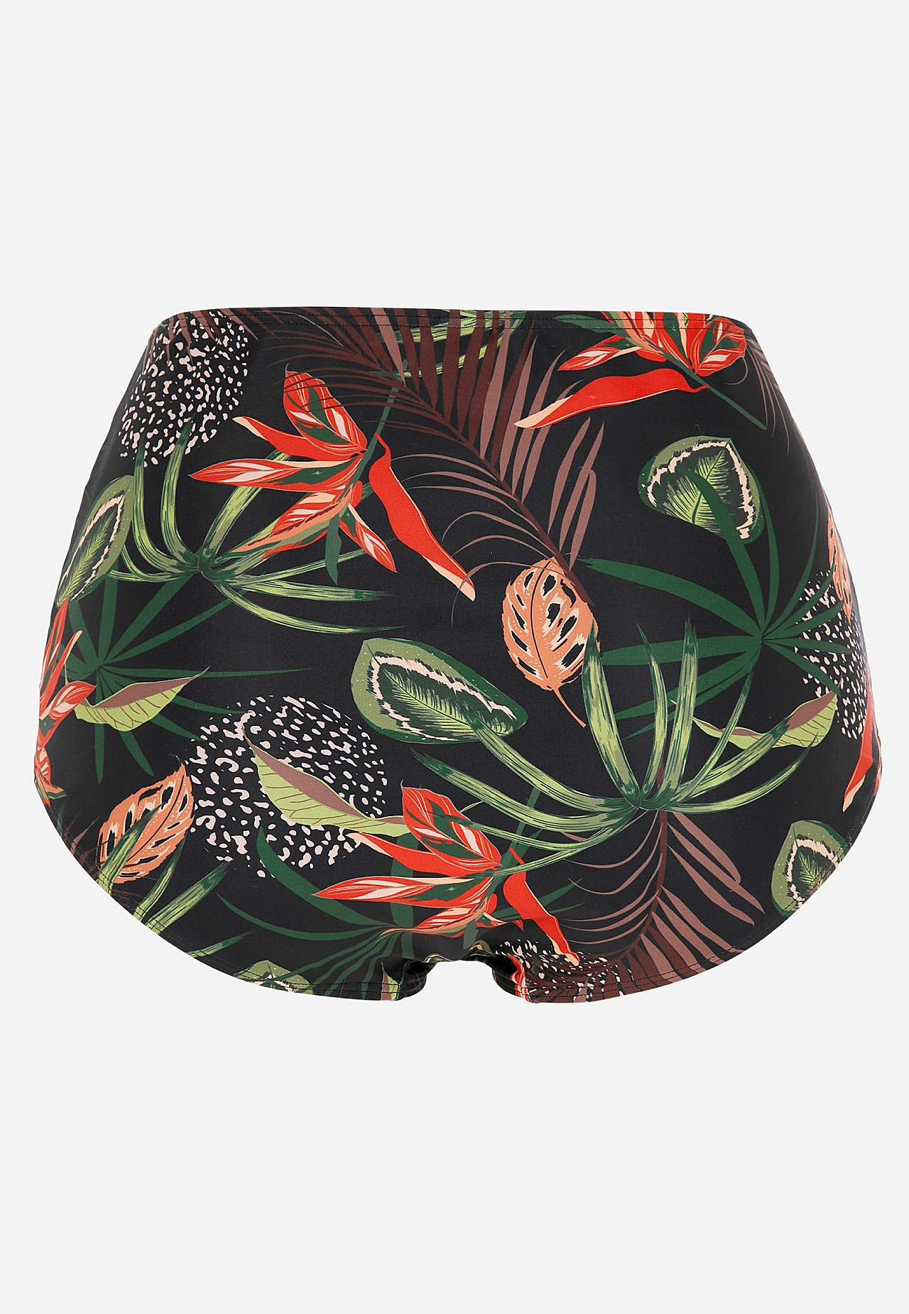 Spodní díl bikin z recyklovaného polyesteru. Vysoký pas. Krásný vzor v přední i zadní části. Dekorativní řasení na stranách. Plně podšitý vnitřek.