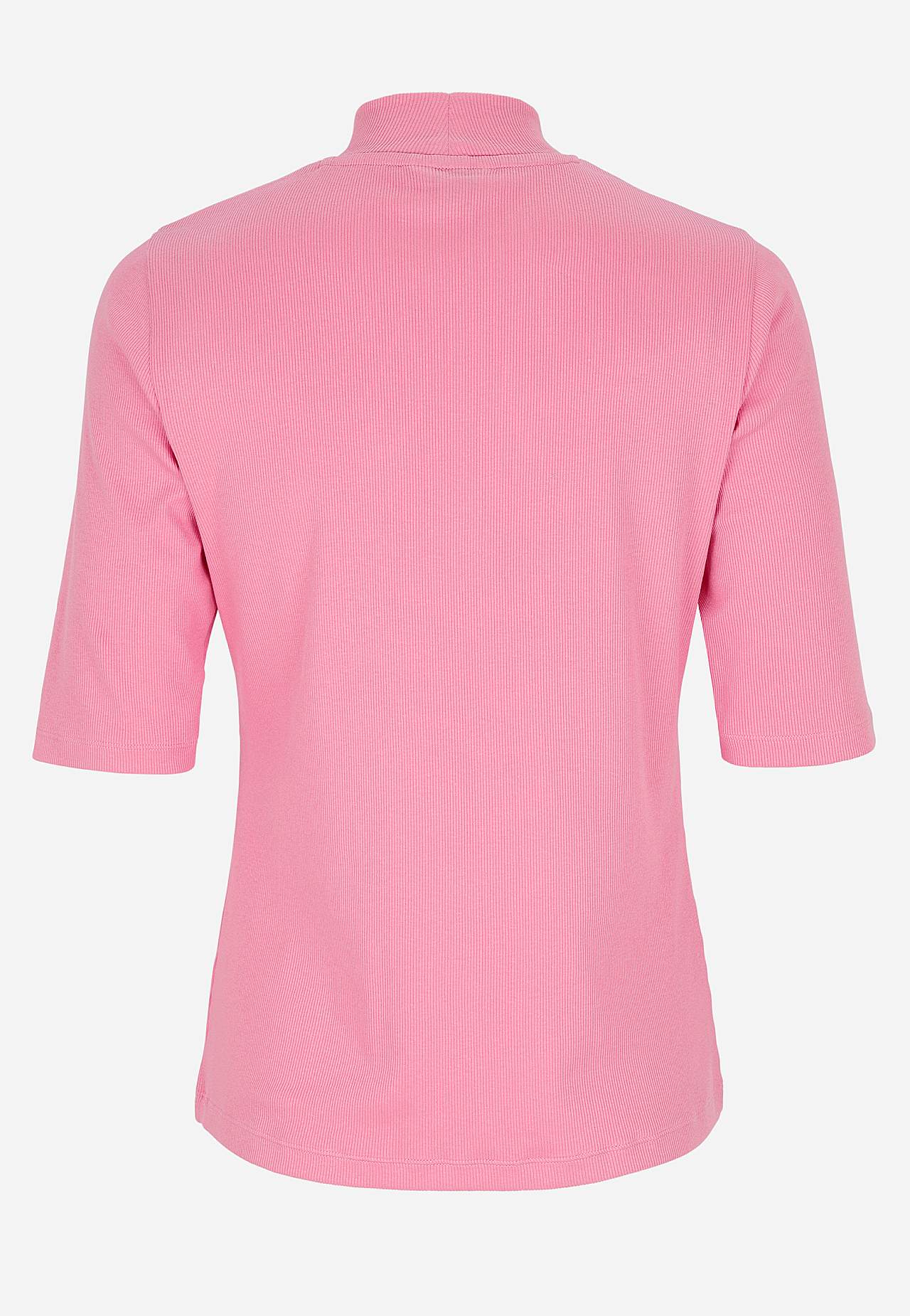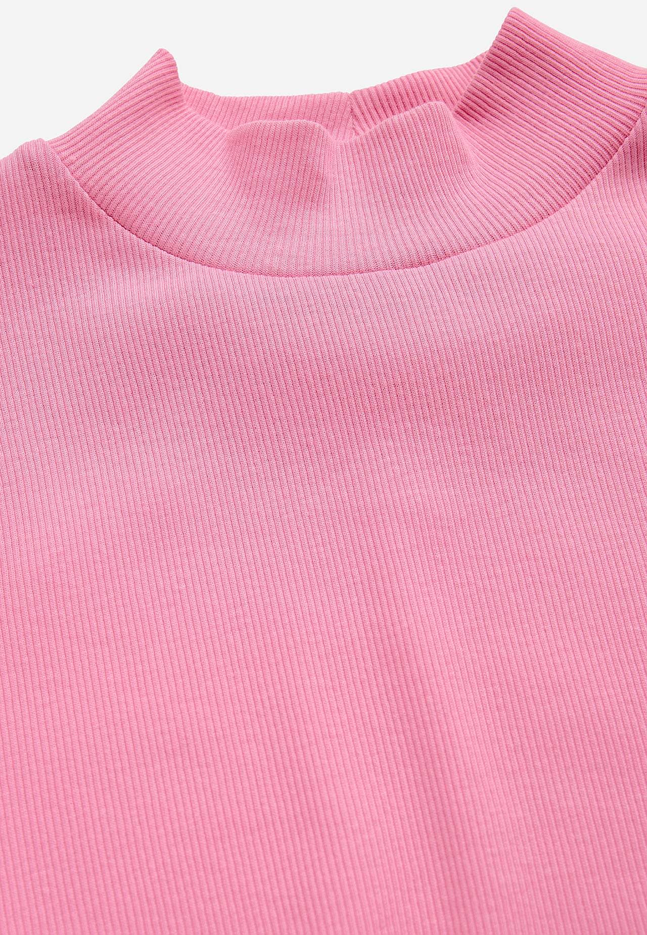 Žebrovaný polo top z organické a měkké bavlny. Roztažitelný a pohodlný žerzej. Klasický a zaoblený střih. Vyrobené z bio bavlny. Krk s rolákem. Krátké rukávy. Rovný lem. Vzadu sedlo. Délka se odvíjí od velikosti, cca 59-74 cm od ramene.