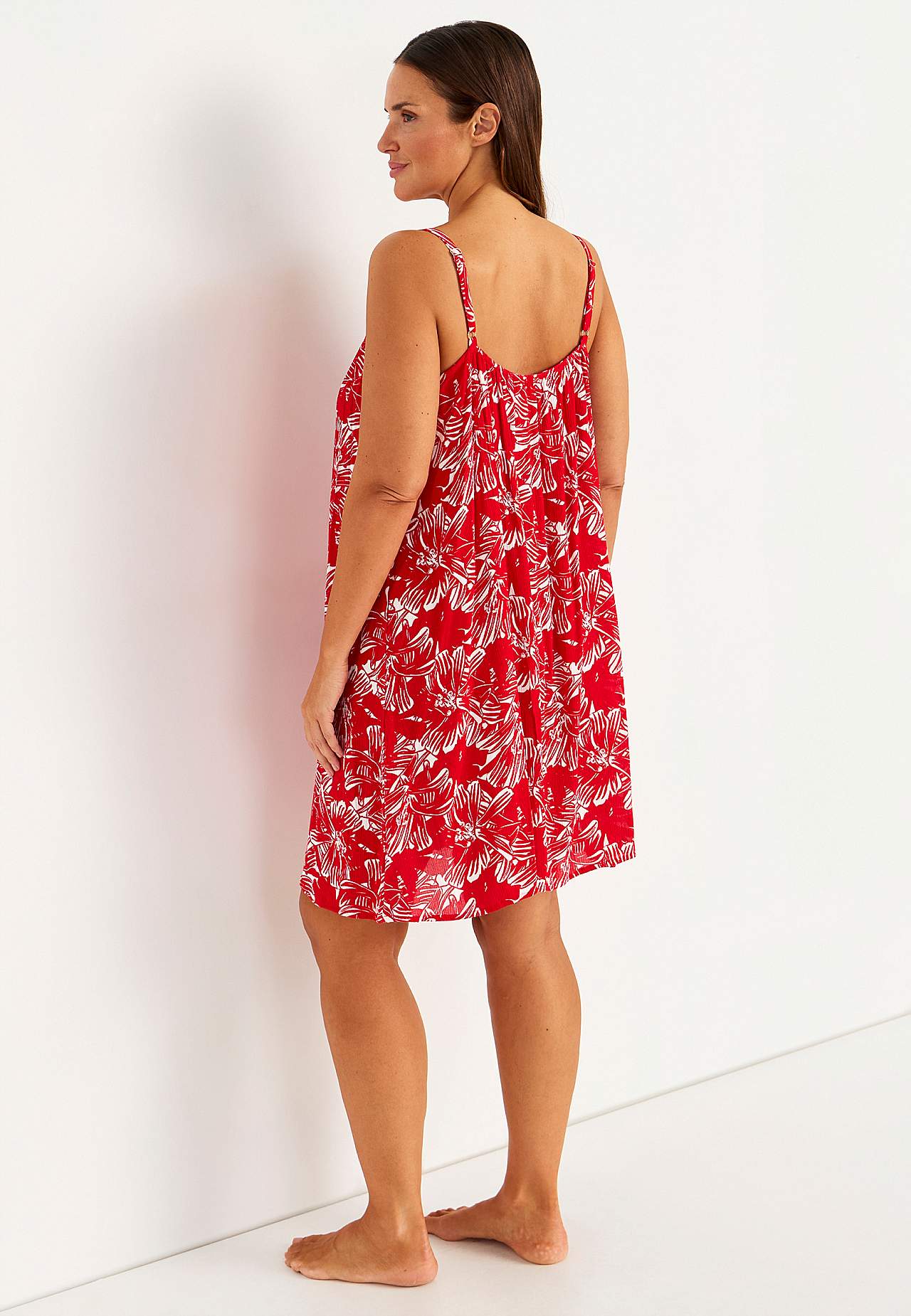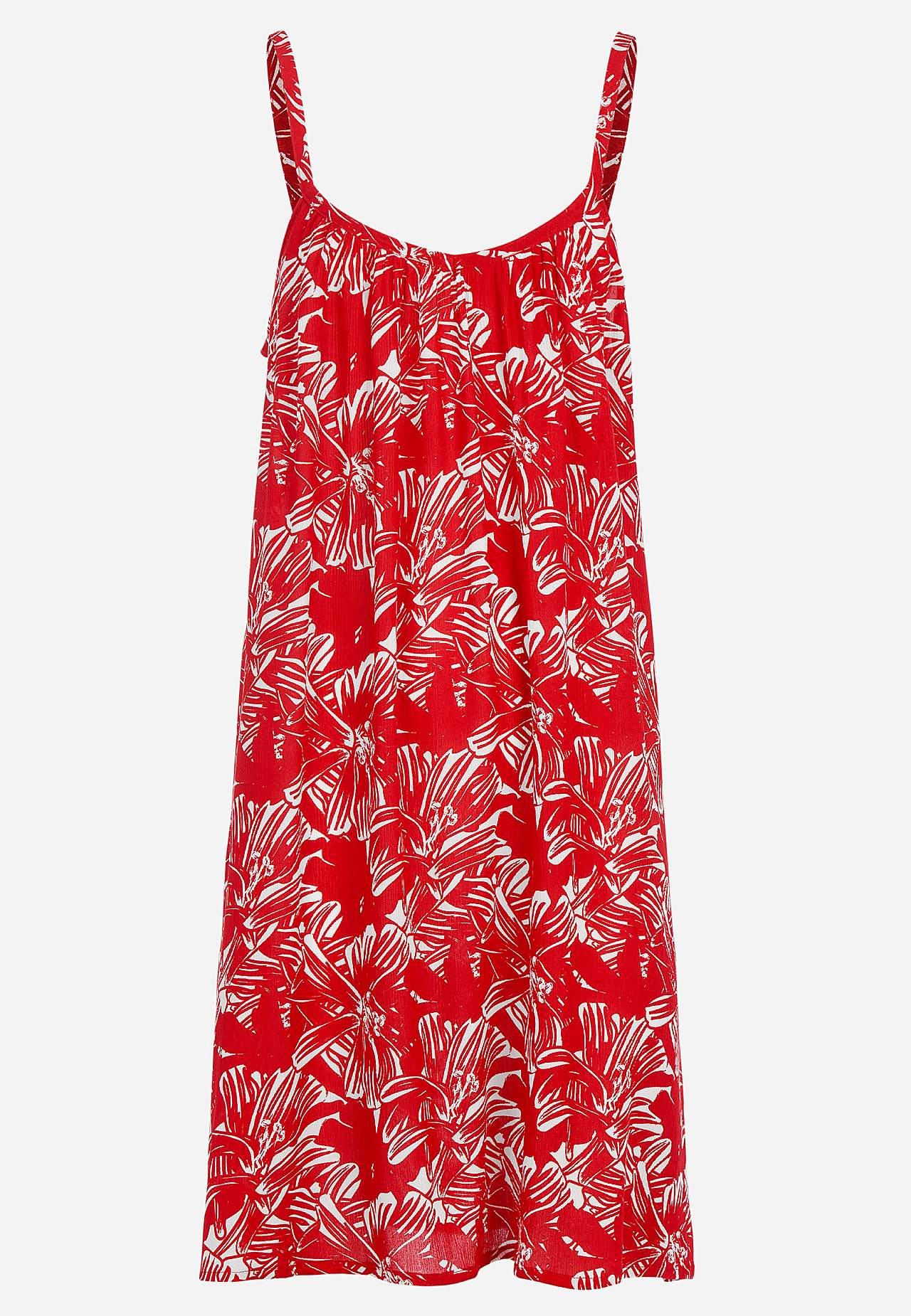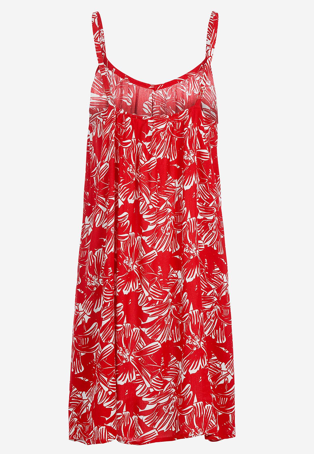 Tkané šaty z viskózového krepu s ramínkem. Vzdušný a měkký materiál. Prostorný střih do A s hezkou šířkou. Nastavitelné ramenní popruhy. Jemně zakulacený lem. Délka zad se odvíjí od velikosti, cca 69-76 cm.