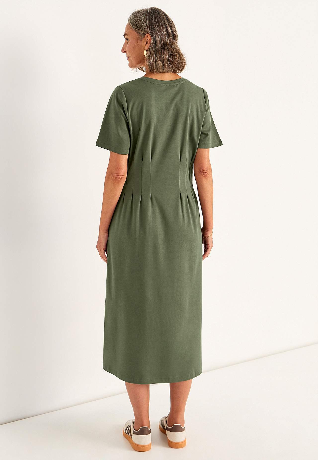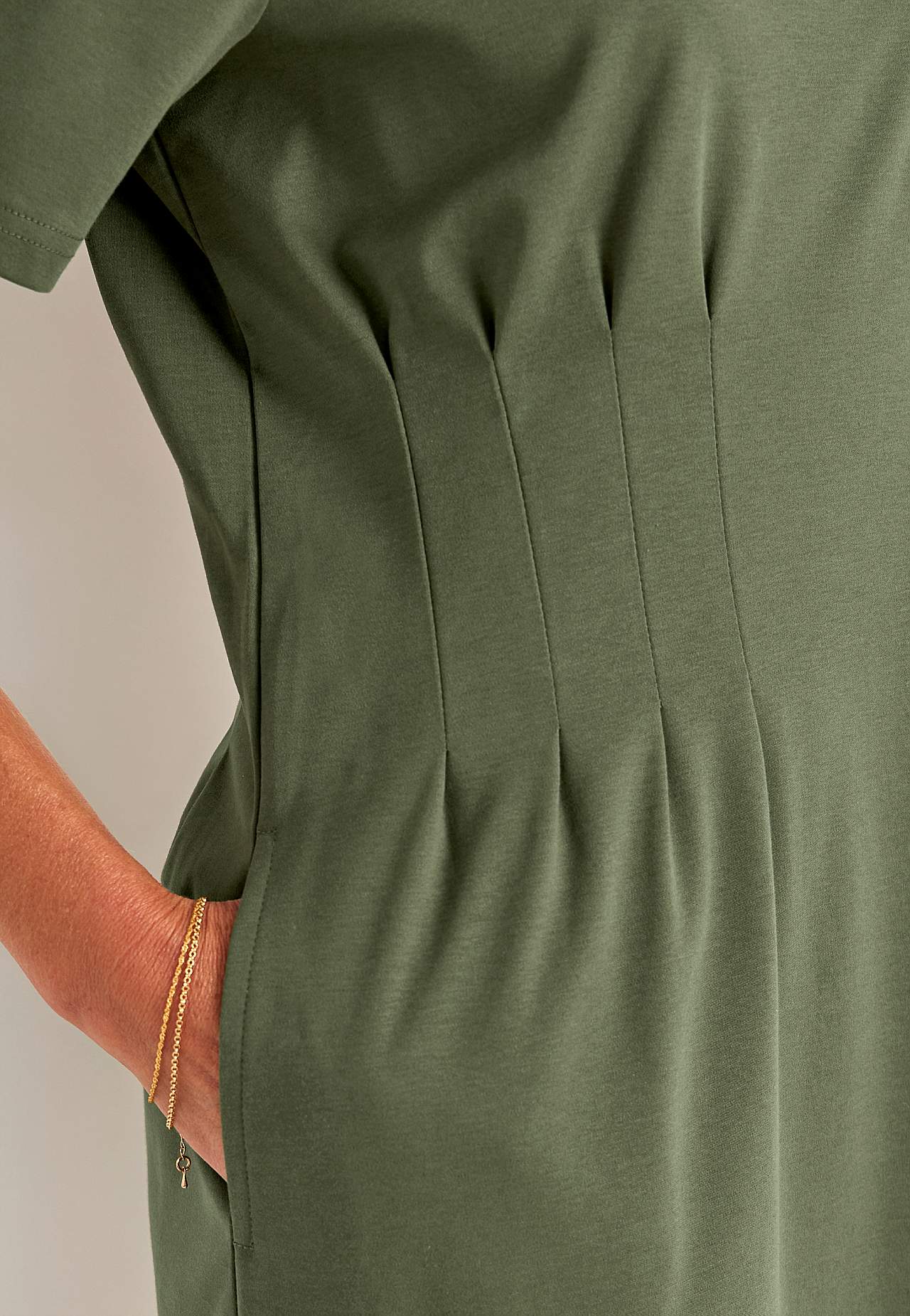 Stylové šaty z extra pevné mercerované bavlny s kapsami. Mercerovaná bavlna prošla speciální úpravou, která zvyšuje její lesk, odolnost a zlepšuje její schopnost absorbovat barvu. Díky této úpravě se oděv nesráží a zachovává si barvu a tvar praní i po vyprání. Oversized střih se skládaným plisé v pase. Volánový pas kolem do... Přečtěte si více