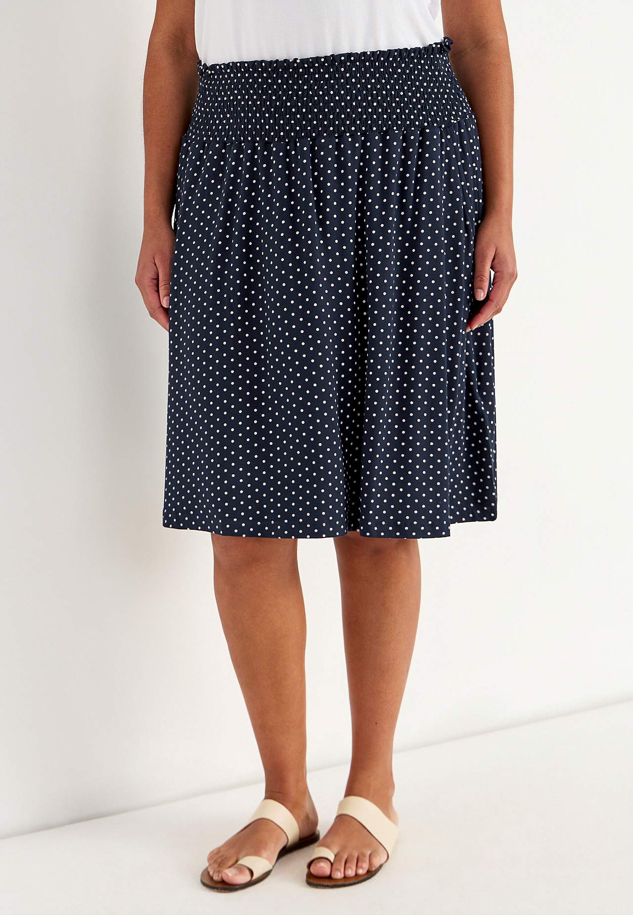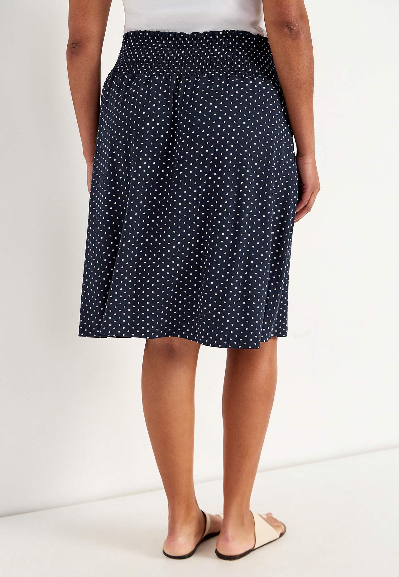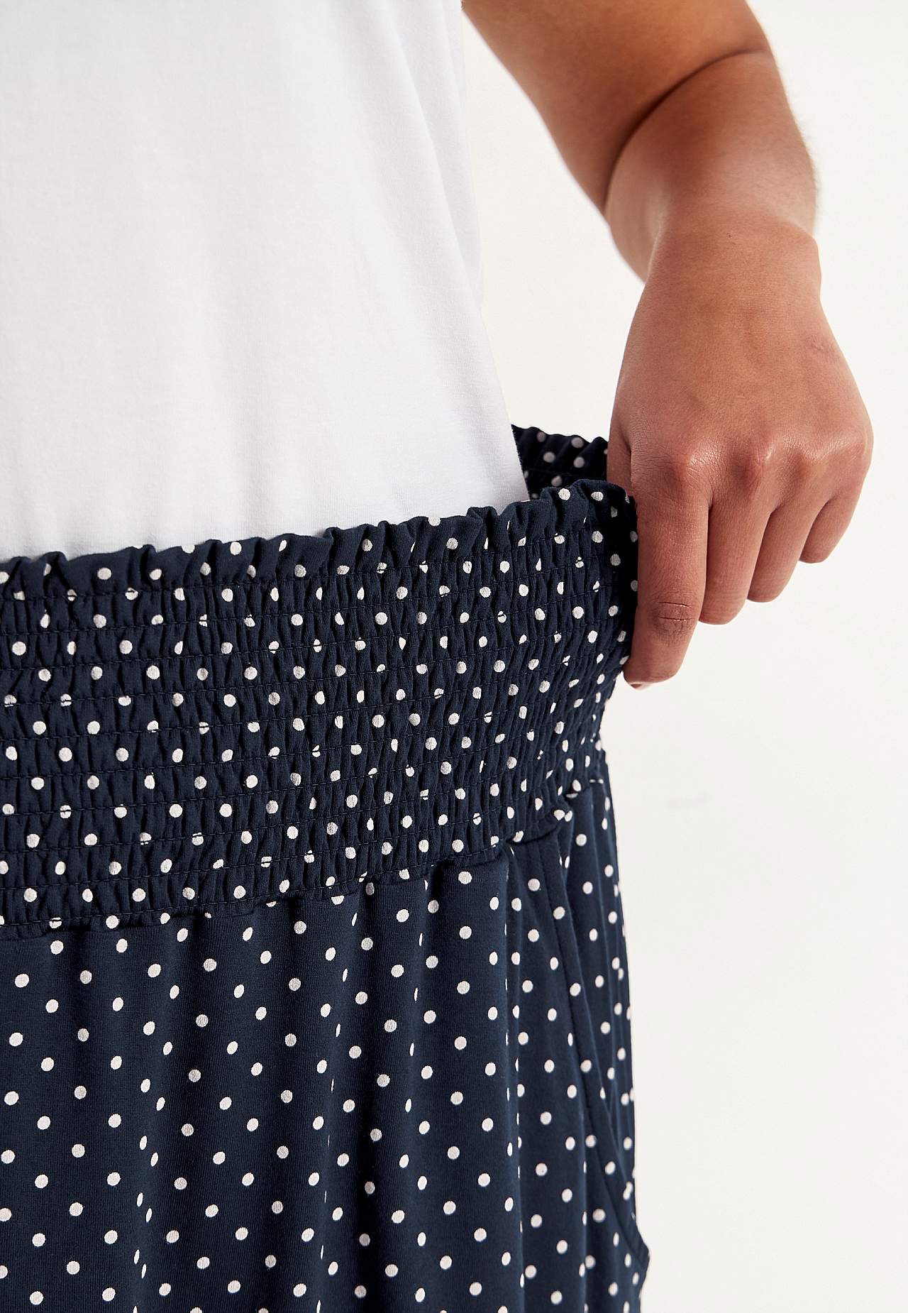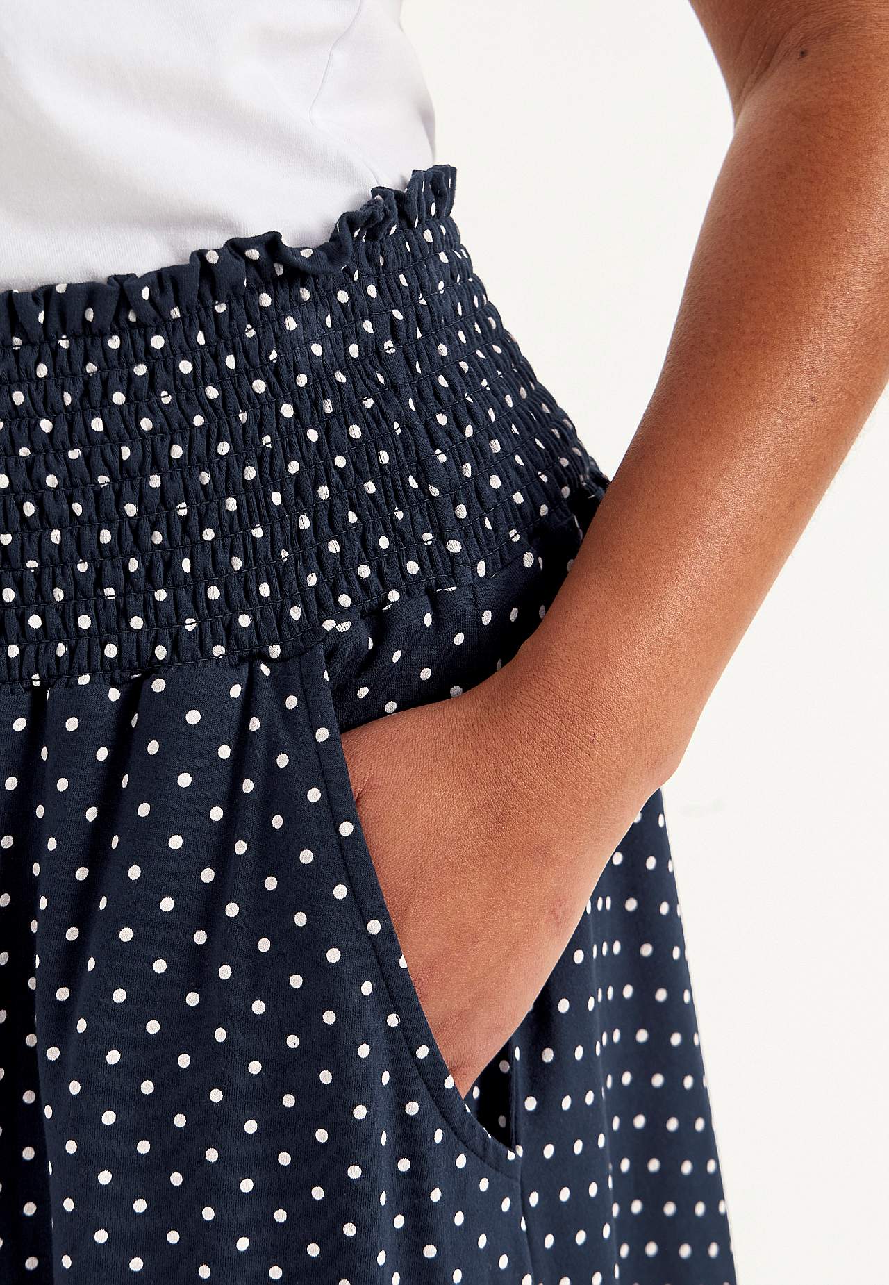 Zvonová sukně z měkkého a jemného žerzeje. Široký střih. Široké a pohodlné nabírání v pase. Kapsy na stranách. Rovný lem. Délka se odvíjí od velikosti, cca 60-62 cm.