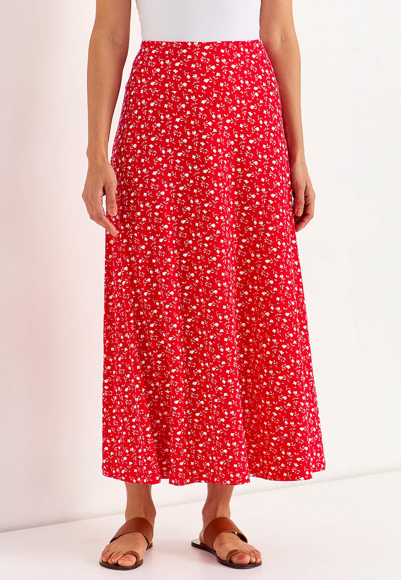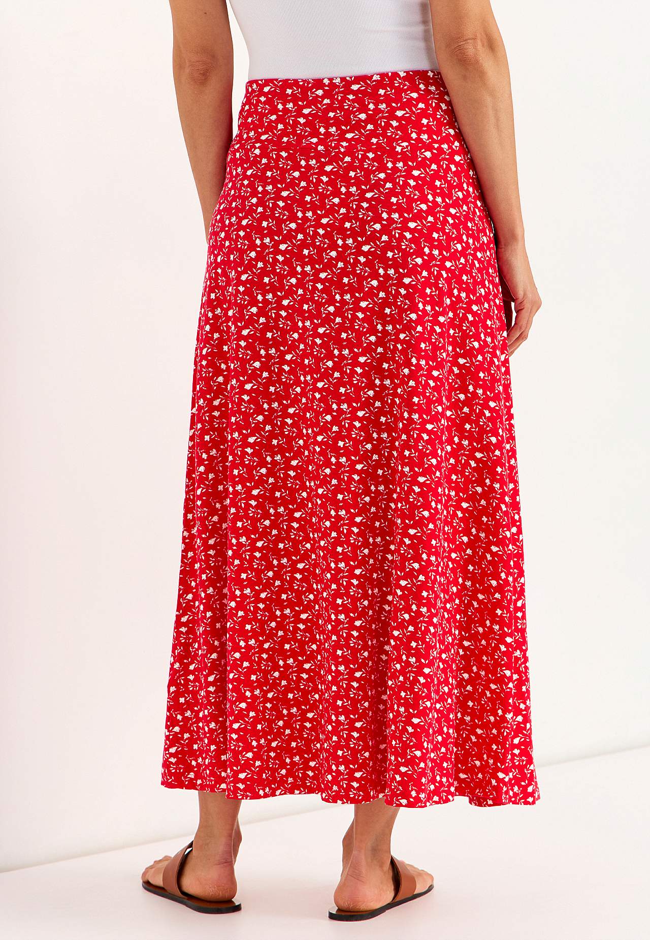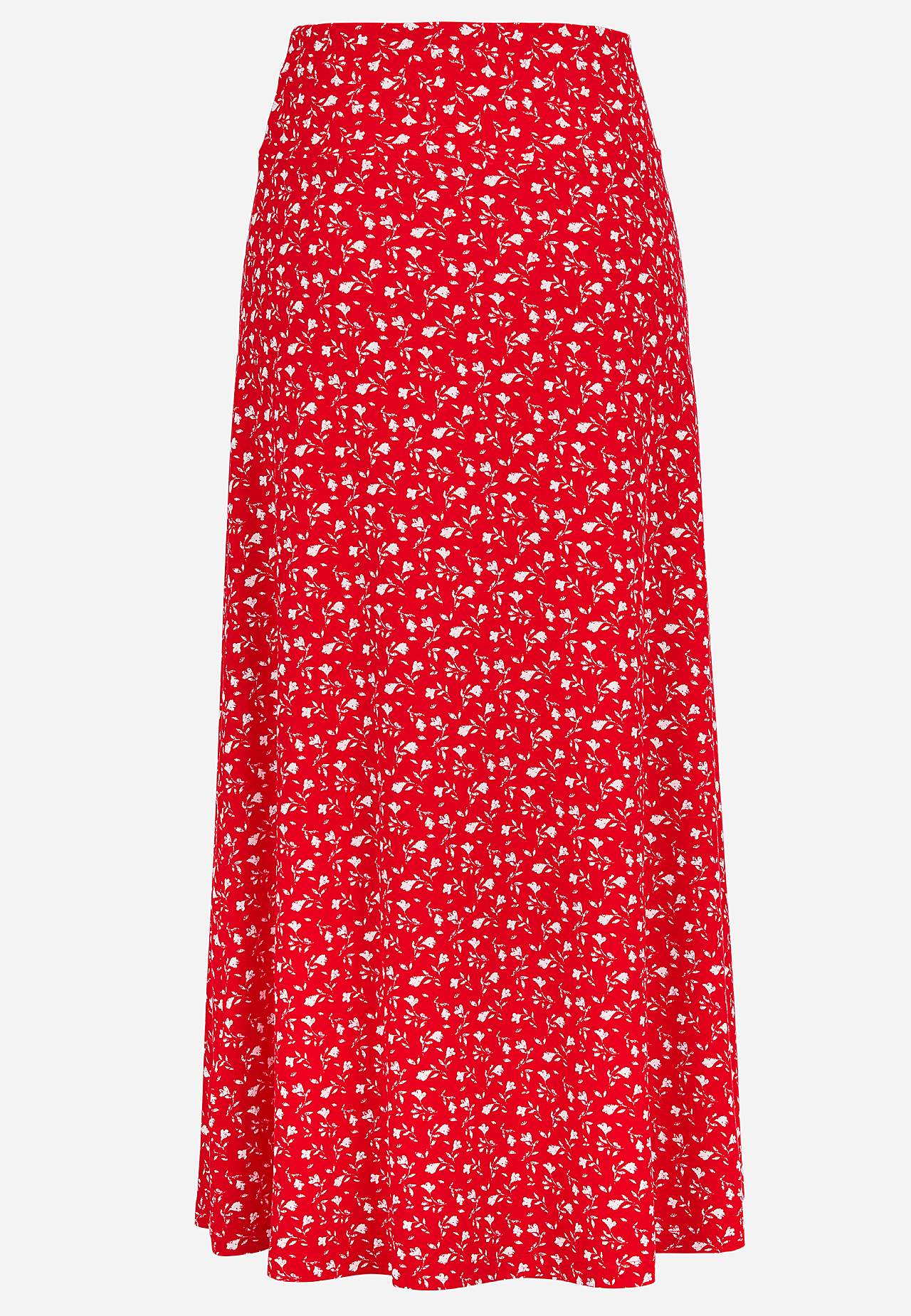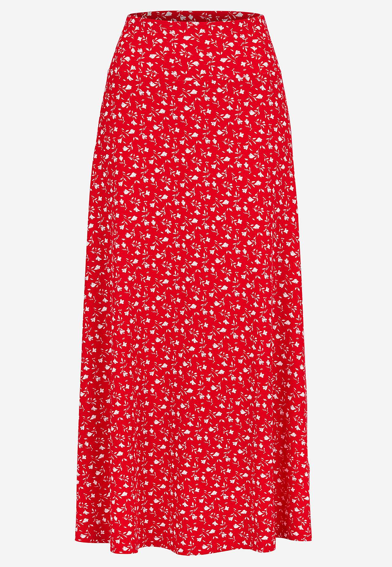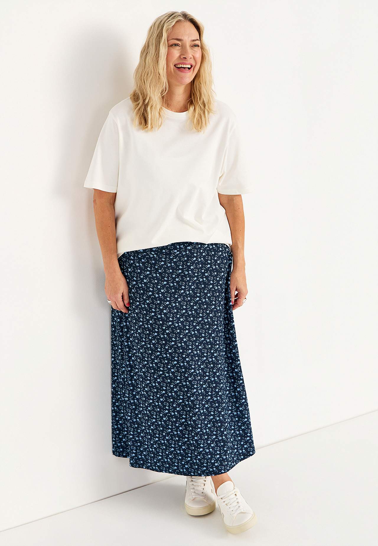 Dlouhá sukně z měkké viskózy s těžkou a hezkou splývavosytí a strečem. Široký střih se střihem do A. Pas se sedlem a pohodlnou gumou. Jemně zakulacený lem. Délka: 90 cm.