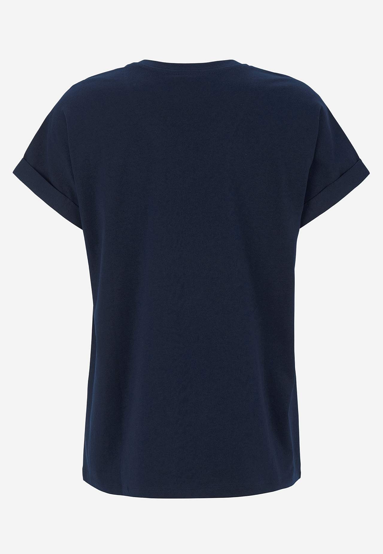 Tričko z příjemně měkké a organické bavlny. Volný střih. Čepečkové rukávy s upevněným ohrnutím. Jemně zakulacený lem. Délka zad se odvíjí od velikosti, cca 65-73 cm.