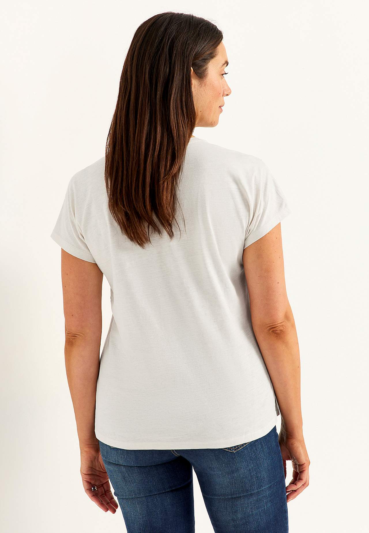 Top z příjemně měkké bavlny. Rovný střih. Čepečkové rukávy. Rovný lem s rozparkem na stranách. Vzadu sedlo. Délka se odvíjí od velikosti, cca 67-81 cm od ramene.