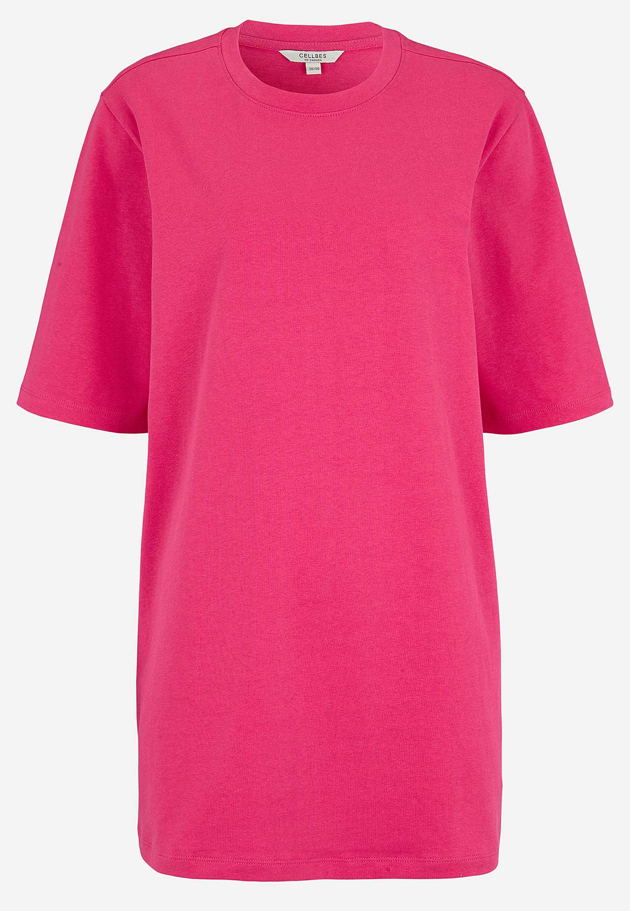 Tunikový top z organické bavlny. Měkká, pevná a lehce hrubší kvalita. Oversized a rovný střih. Kulatý a žebrovaný výstřih. Spadlé rameno. Krátké rukávy. Rovný lem. Kombinujte s 700011. Délka se odvíjí od velikosti, cca 79-86 cm vzadu od ramene.