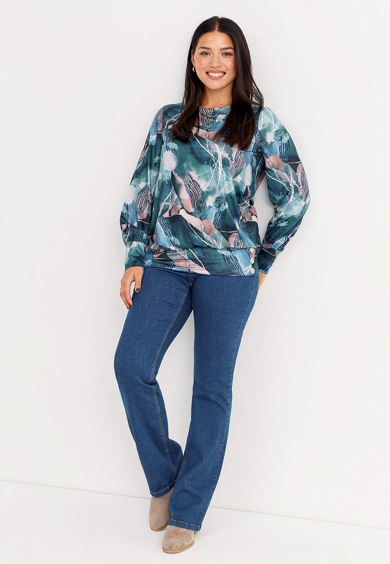 Vzorovaný žerzejový top s knoflíkovou dekorací
