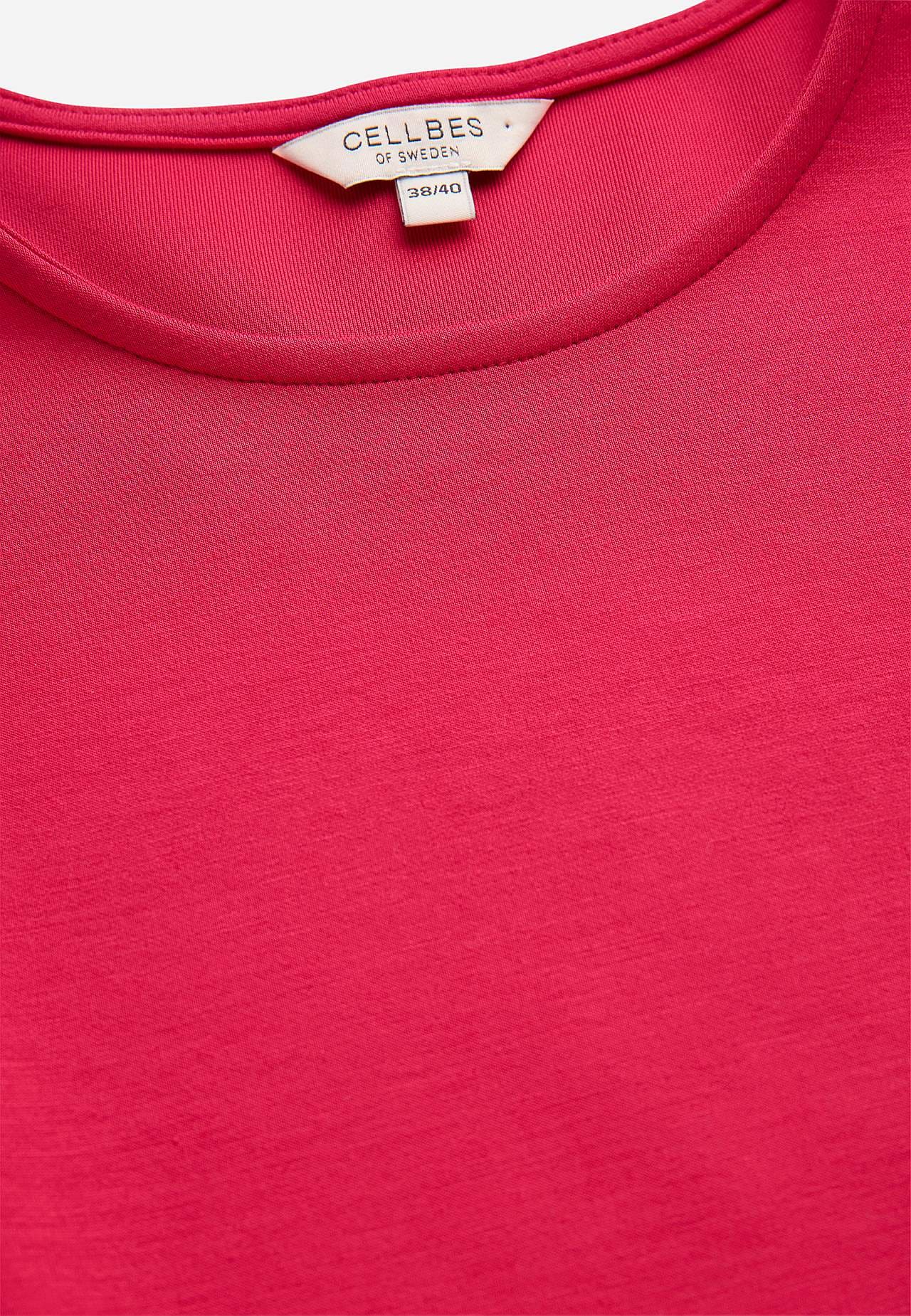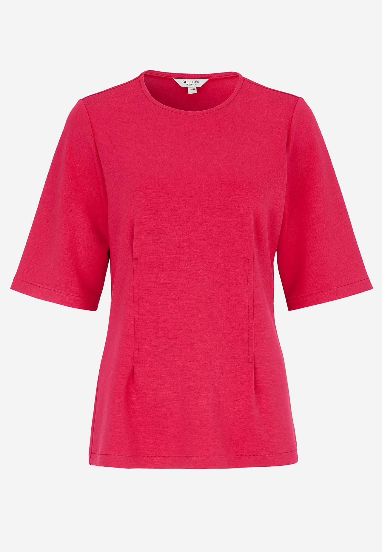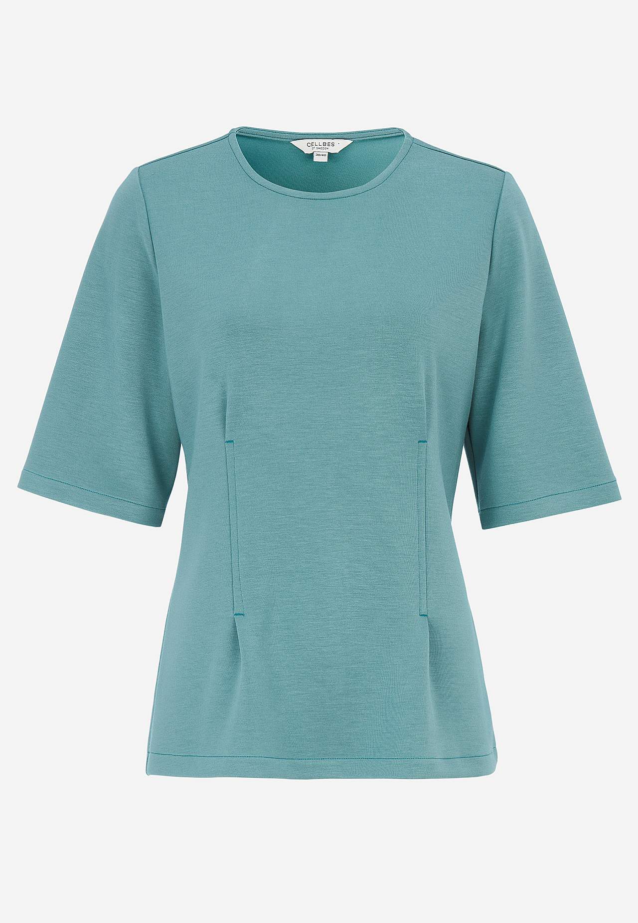 Hedvábně jemný top z mírně těžší směsi modalu. Klasický střih s lichotivým záševkem v přední i zadní části. Kulatý výstřih. Široké rukávy s délkou po lokty. Rovný lem. Vzadu sedlo. Délka se odvíjí od velikosti, cca 62-77 cm od ramene.