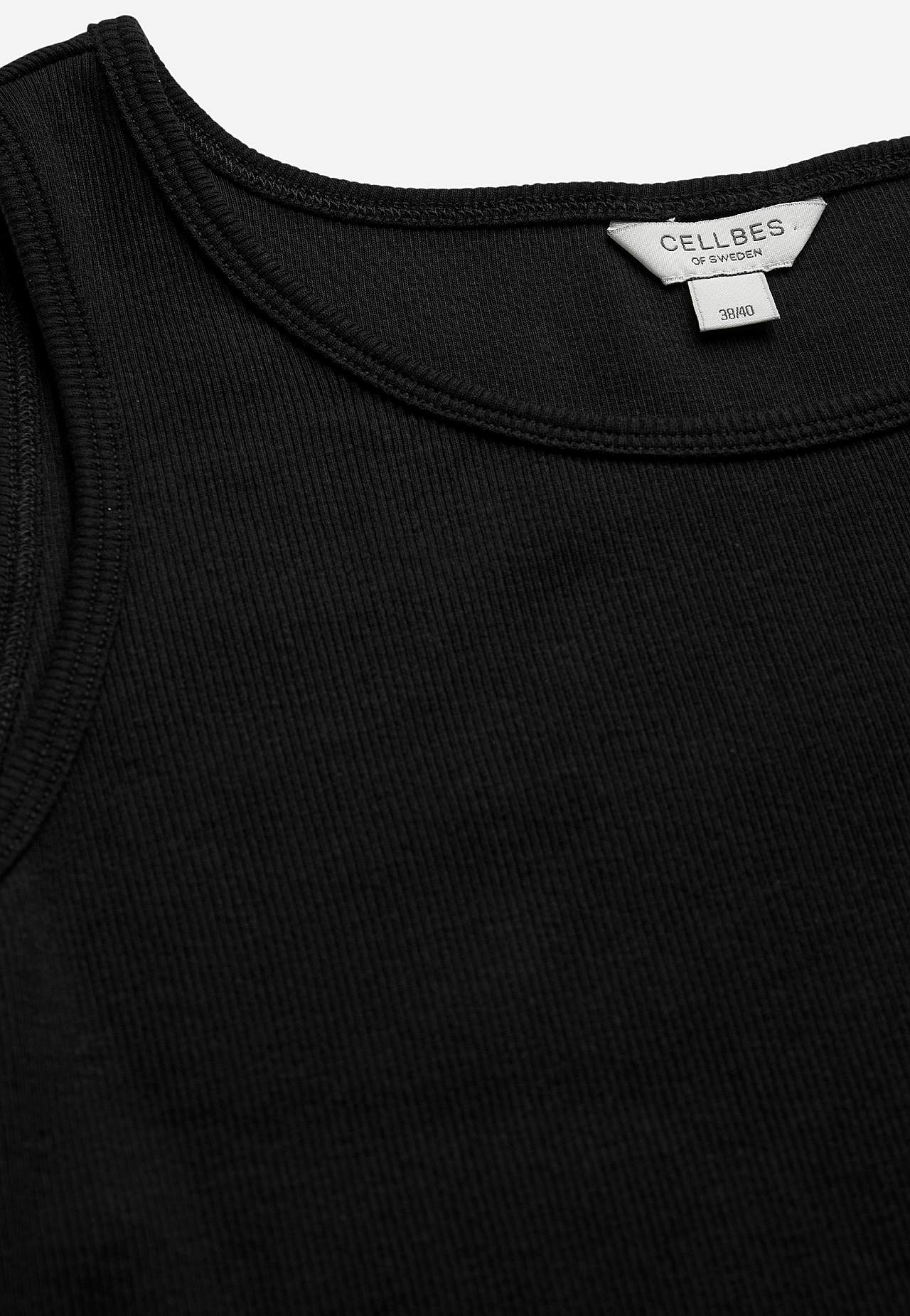 Žebrovaný top s kulatým výstřihem, ideální základ každého šatníku. Roztažitelný a pohodlný žerzej. Klasický střih. Organická bavlna. Zaoblený krk s paspulkovým lemem. Paspulkový lem v průramku. Rovný lem. Vzadu sedlo. Délka se odvíjí od velikosti, cca 58-74 cm od ramene.