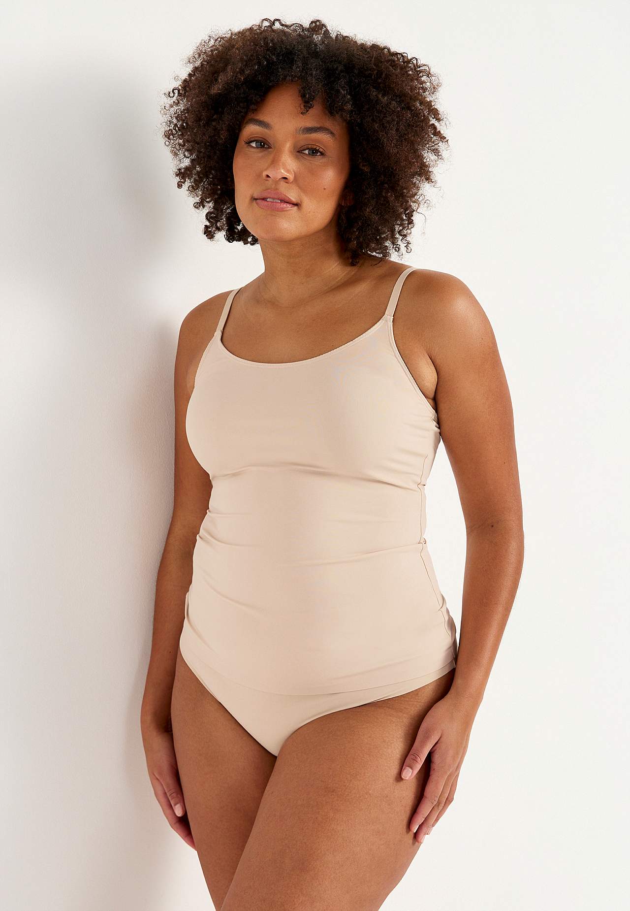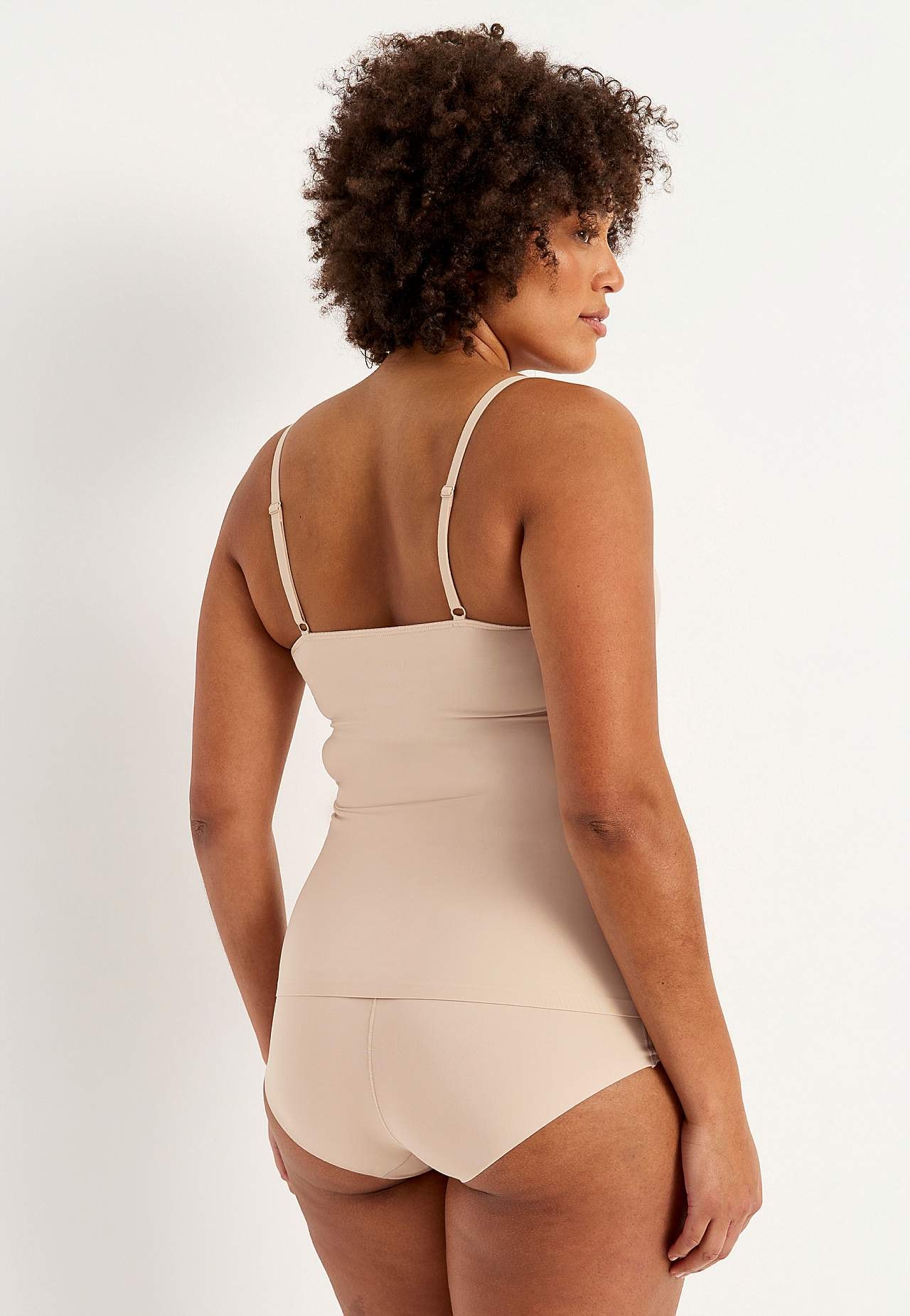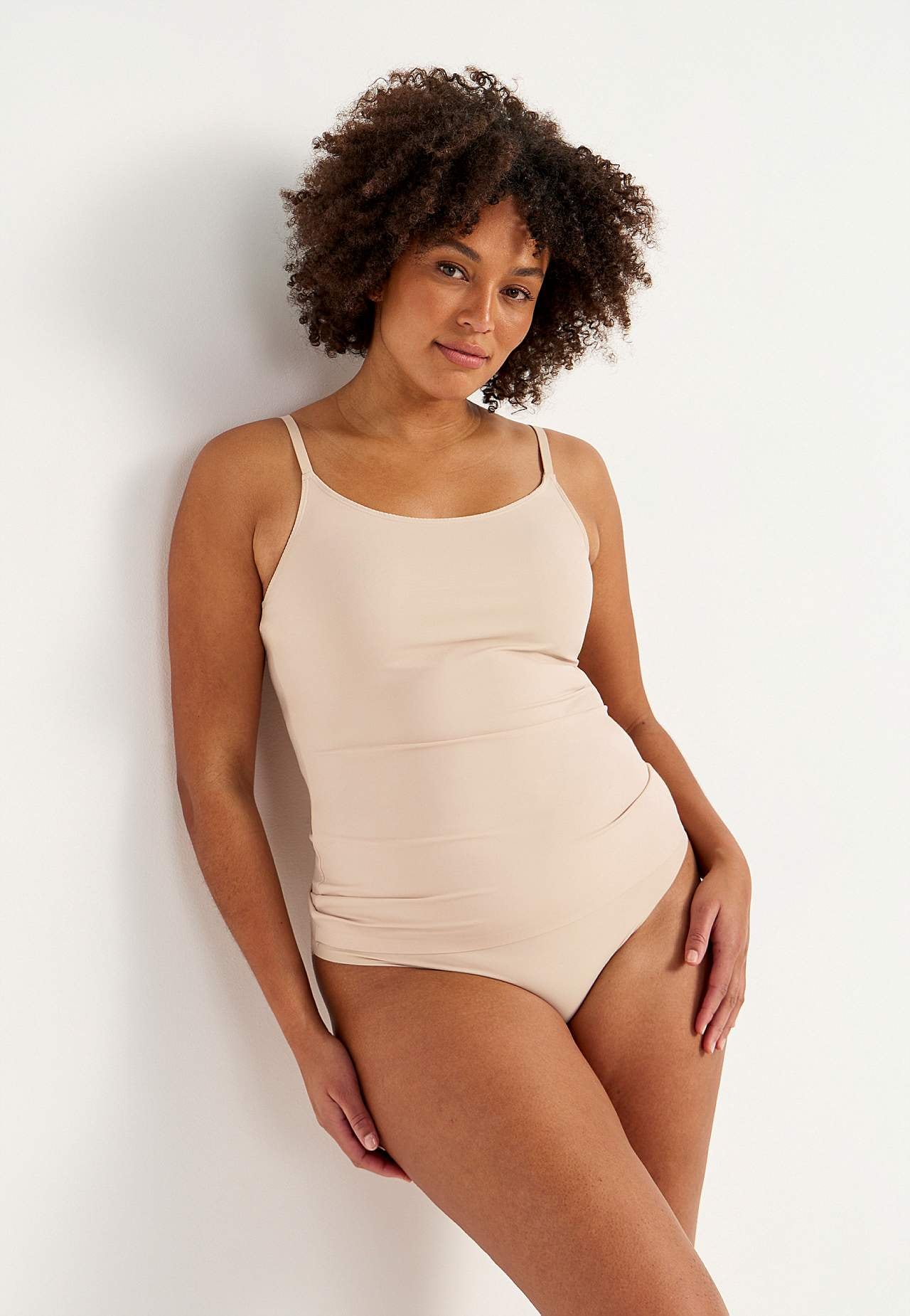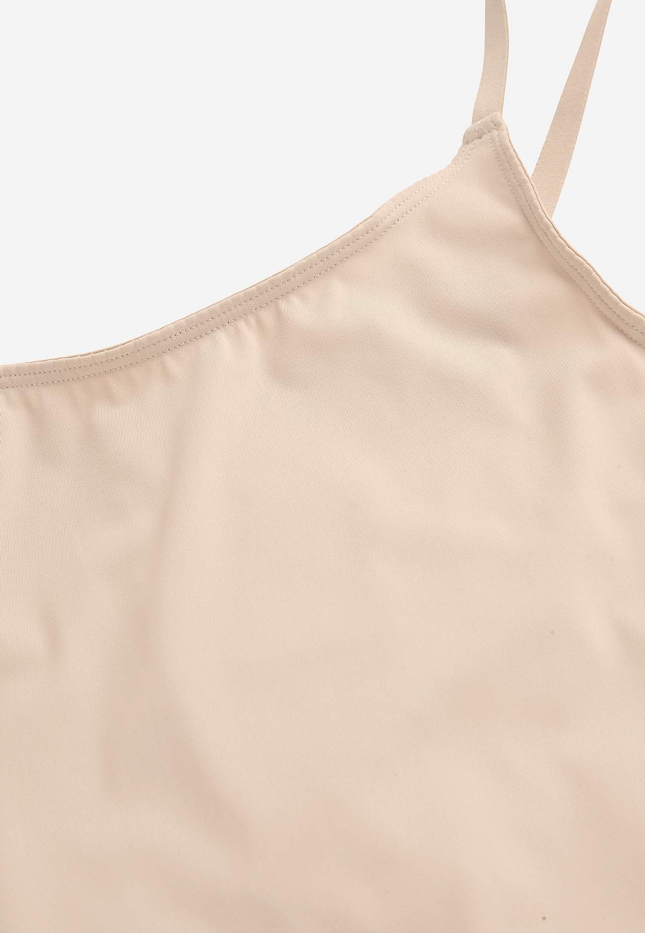 Obepnutý střih s lehkým tvarujícím efektem. Měkké a roztažitelné mikrovlákno. Rychleschnoucí materiál ideální na teplé dny. Nastavitelné ramínkové řemínky. Límec do U. Bezešvý a střižený laserem lem. Délka zad se odvíjí od velikosti, cca 35-47,5 cm.