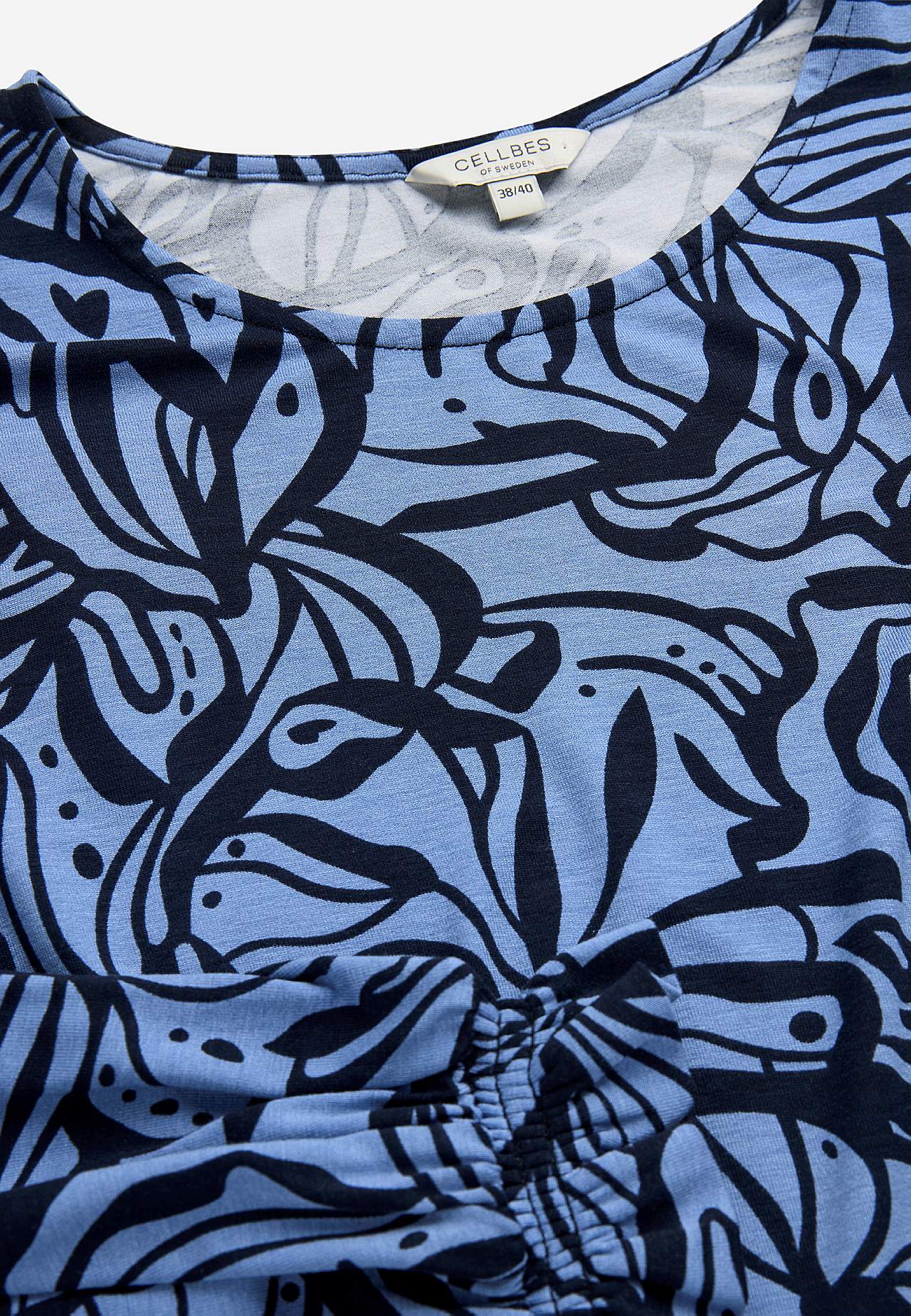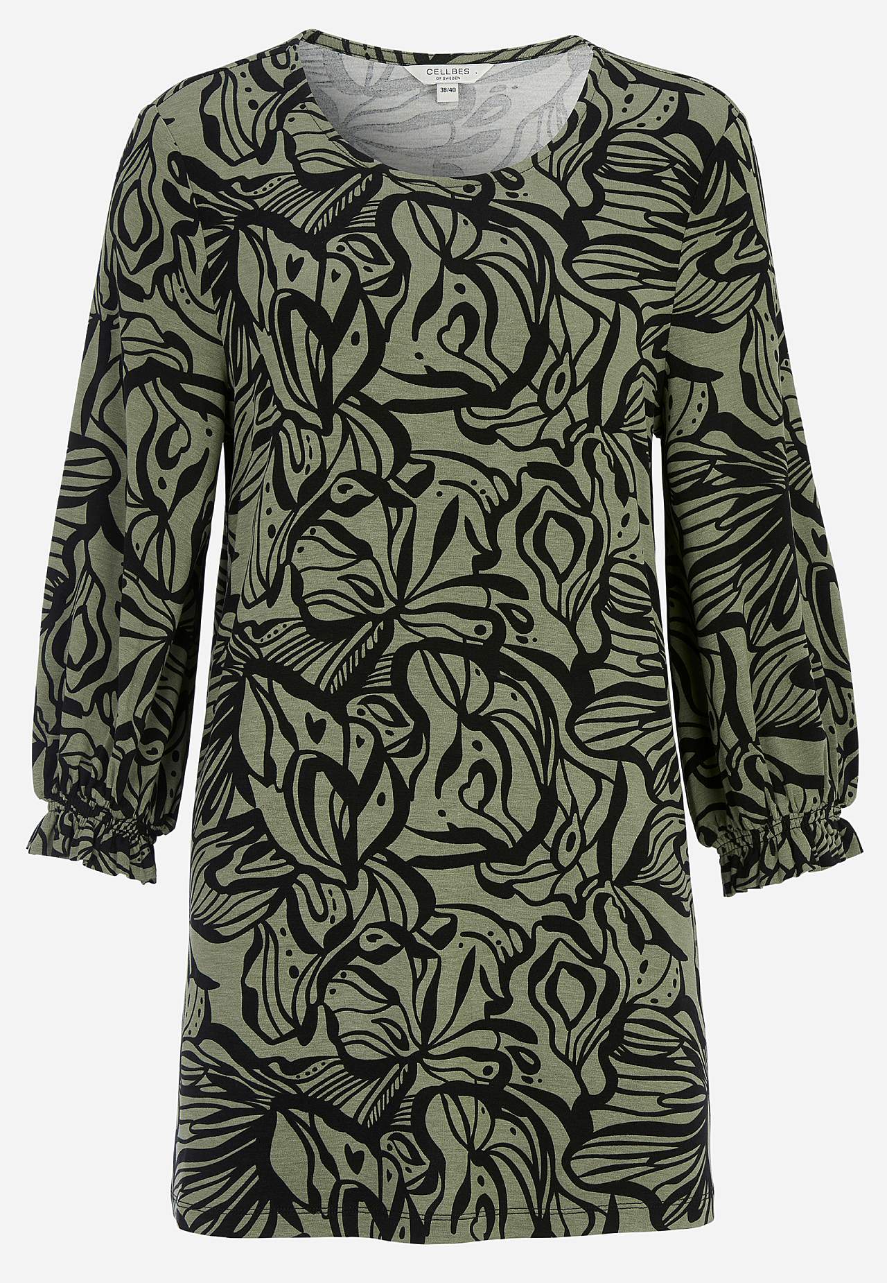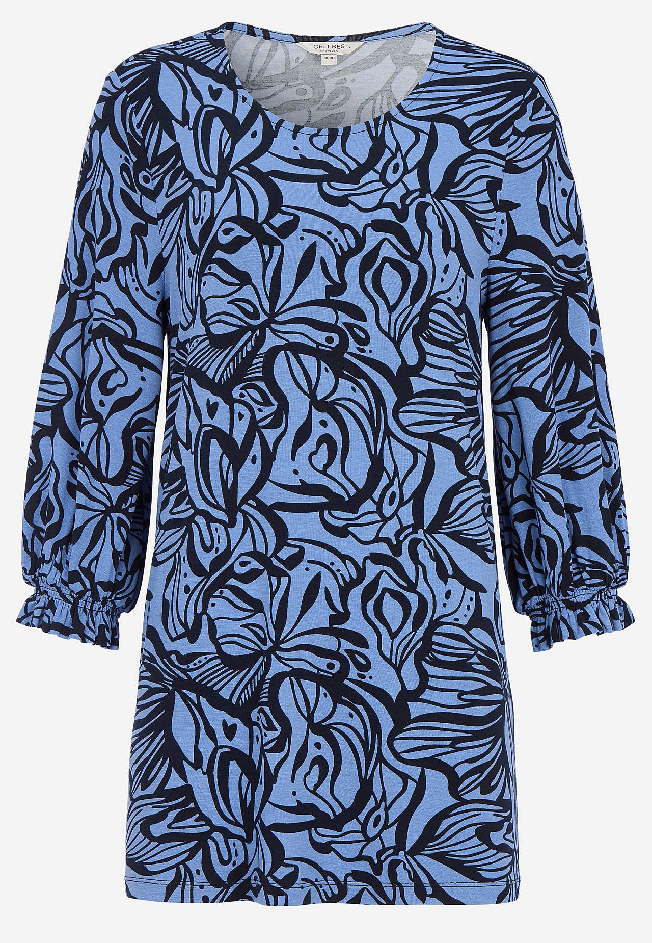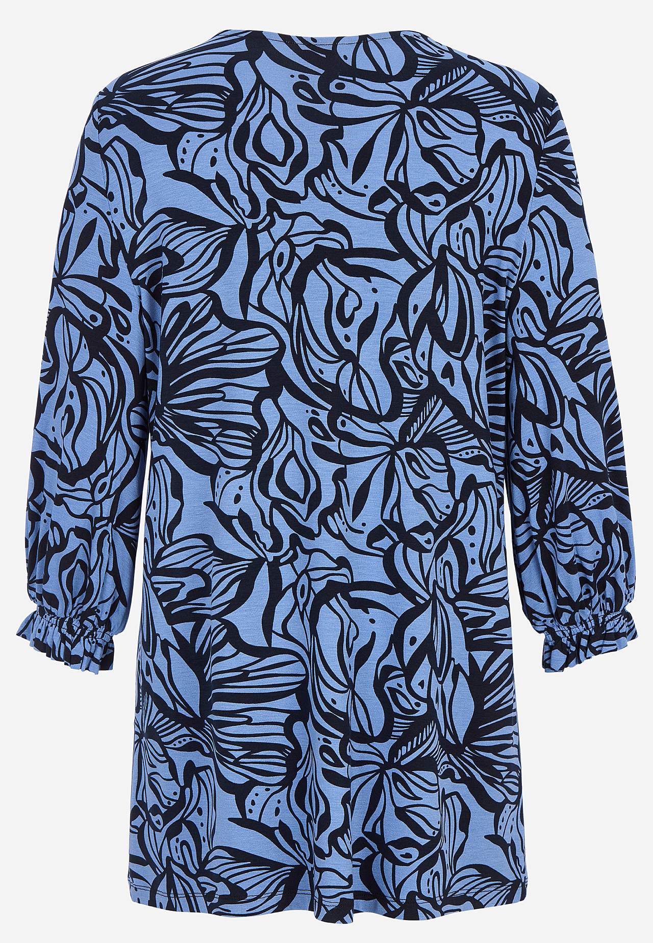 Hezké a těžké řasení. Klasický střih. Zaoblený krk. Široké rukávy s 3/4 délkou a nabírání na manžetách. Vzadu sedlo. Délka se odvíjí od velikosti, cca 73-80 cm od ramene.