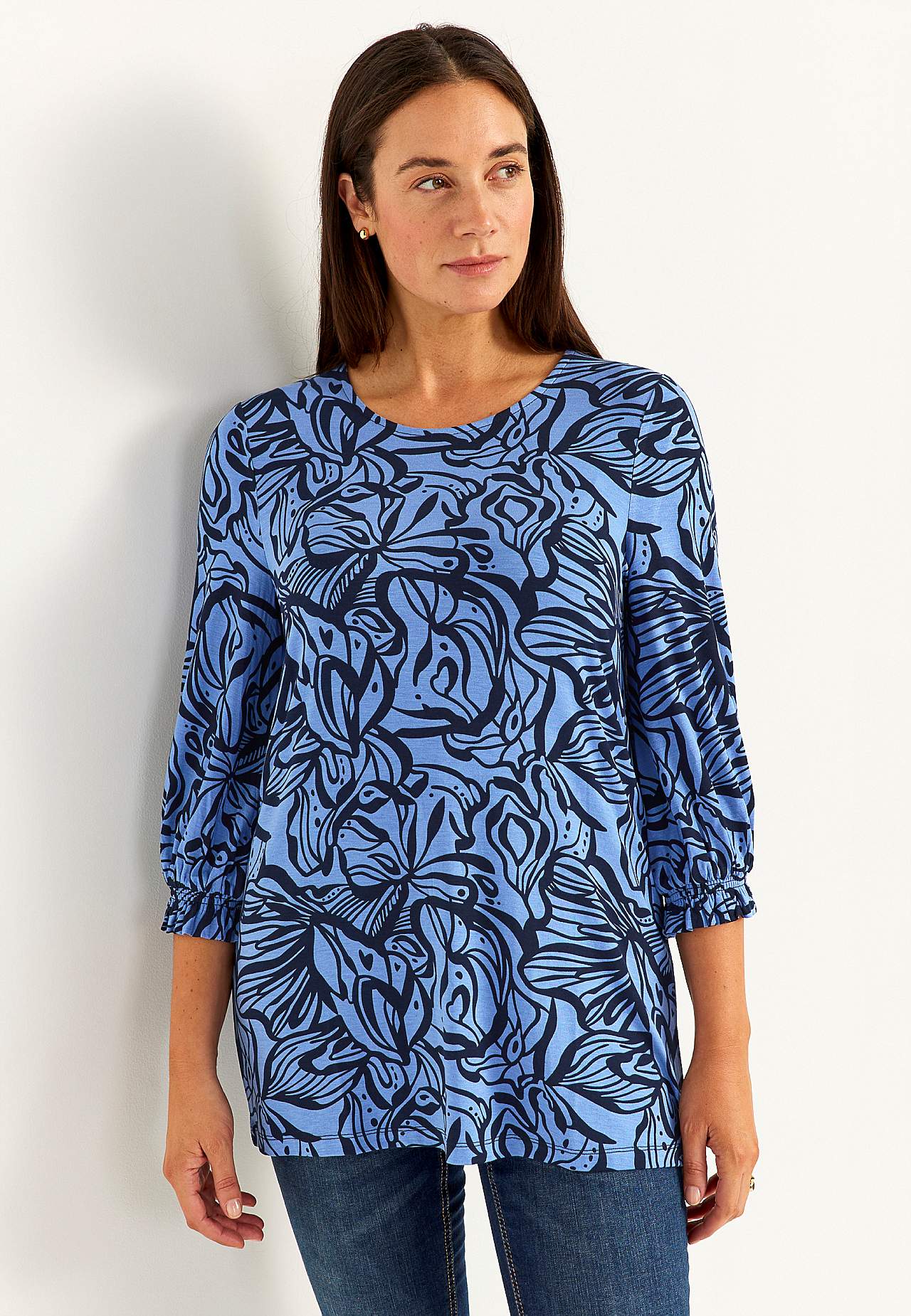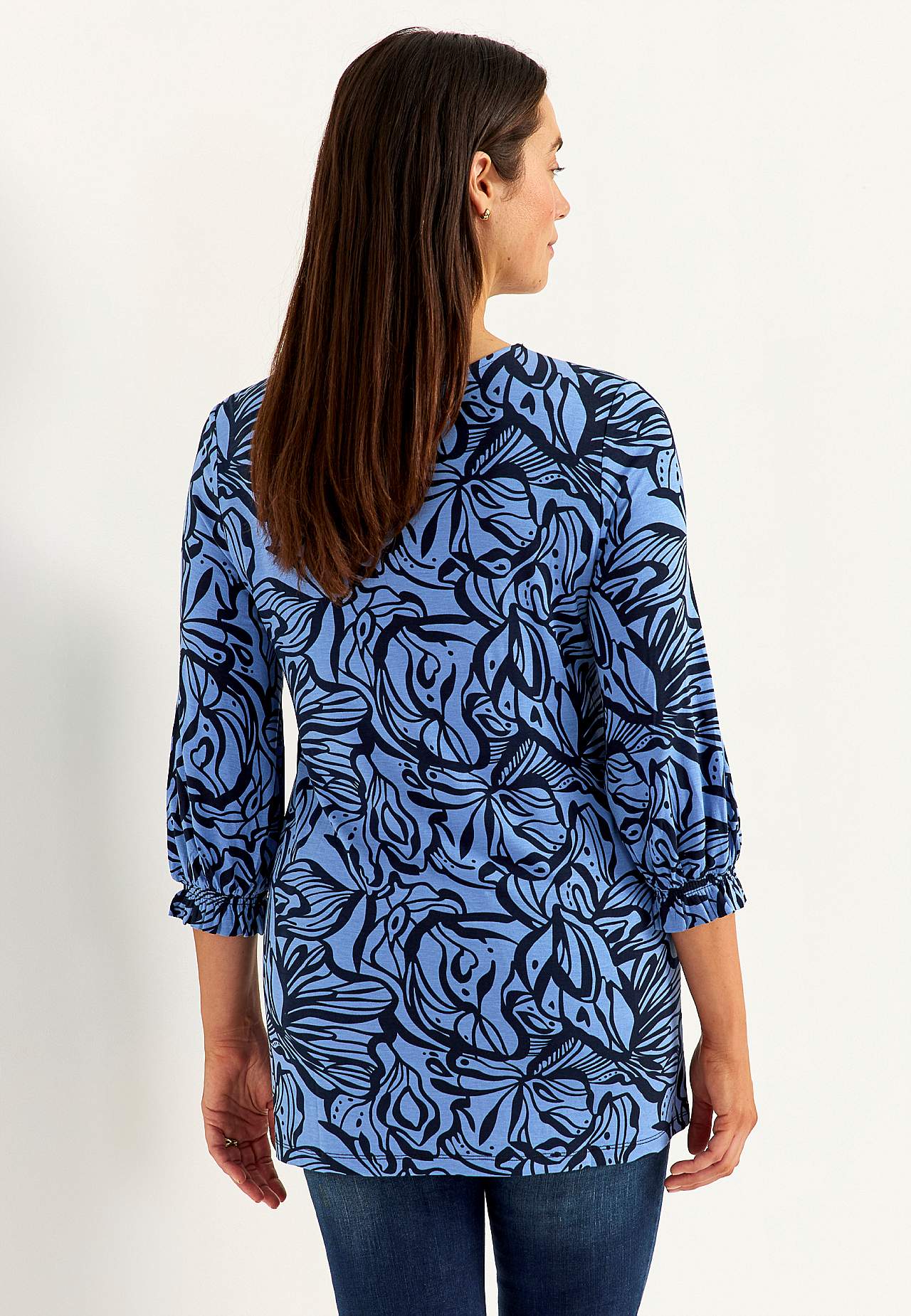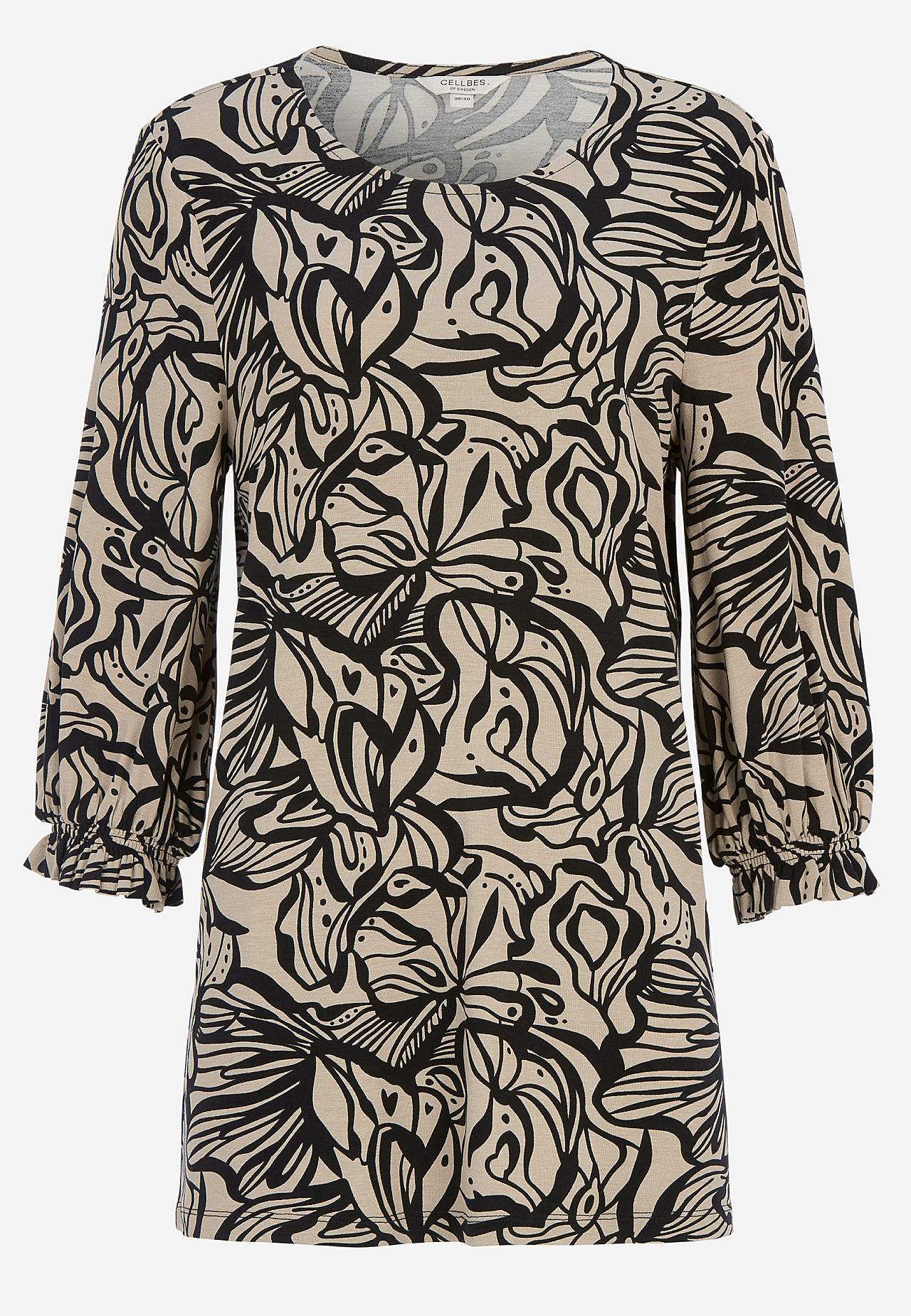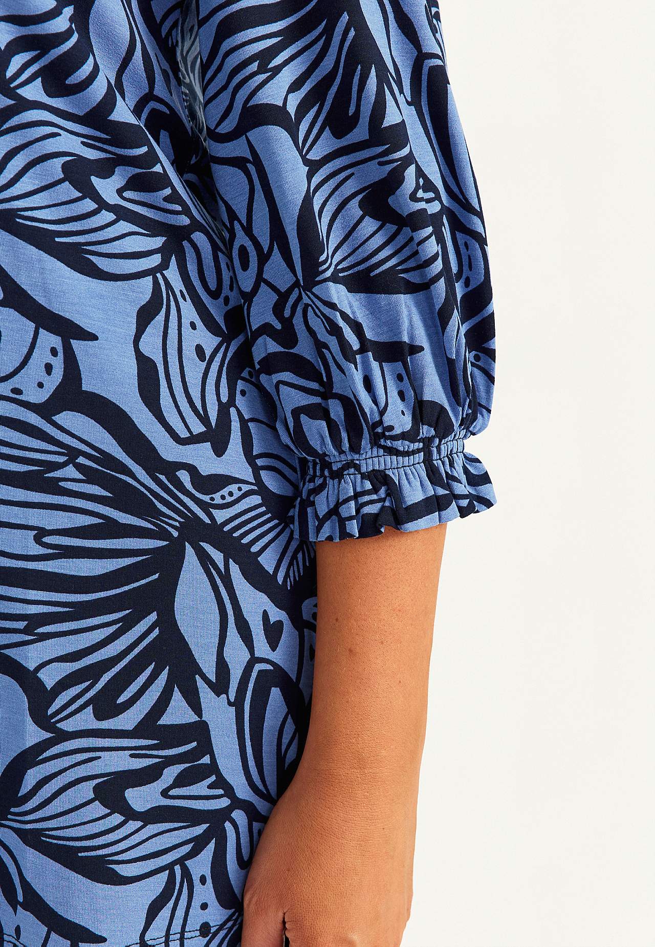 Hezké a těžké řasení. Klasický střih. Zaoblený krk. Široké rukávy s 3/4 délkou a nabírání na manžetách. Vzadu sedlo. Délka se odvíjí od velikosti, cca 73-80 cm od ramene.