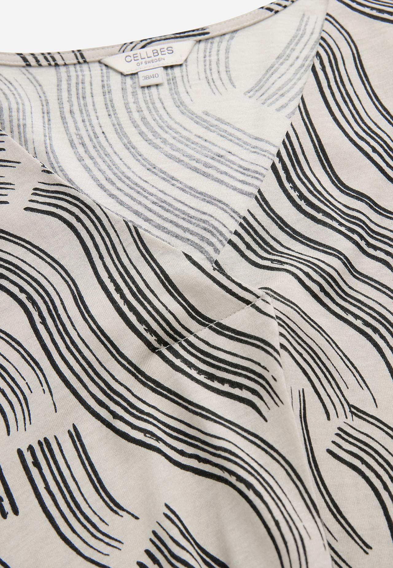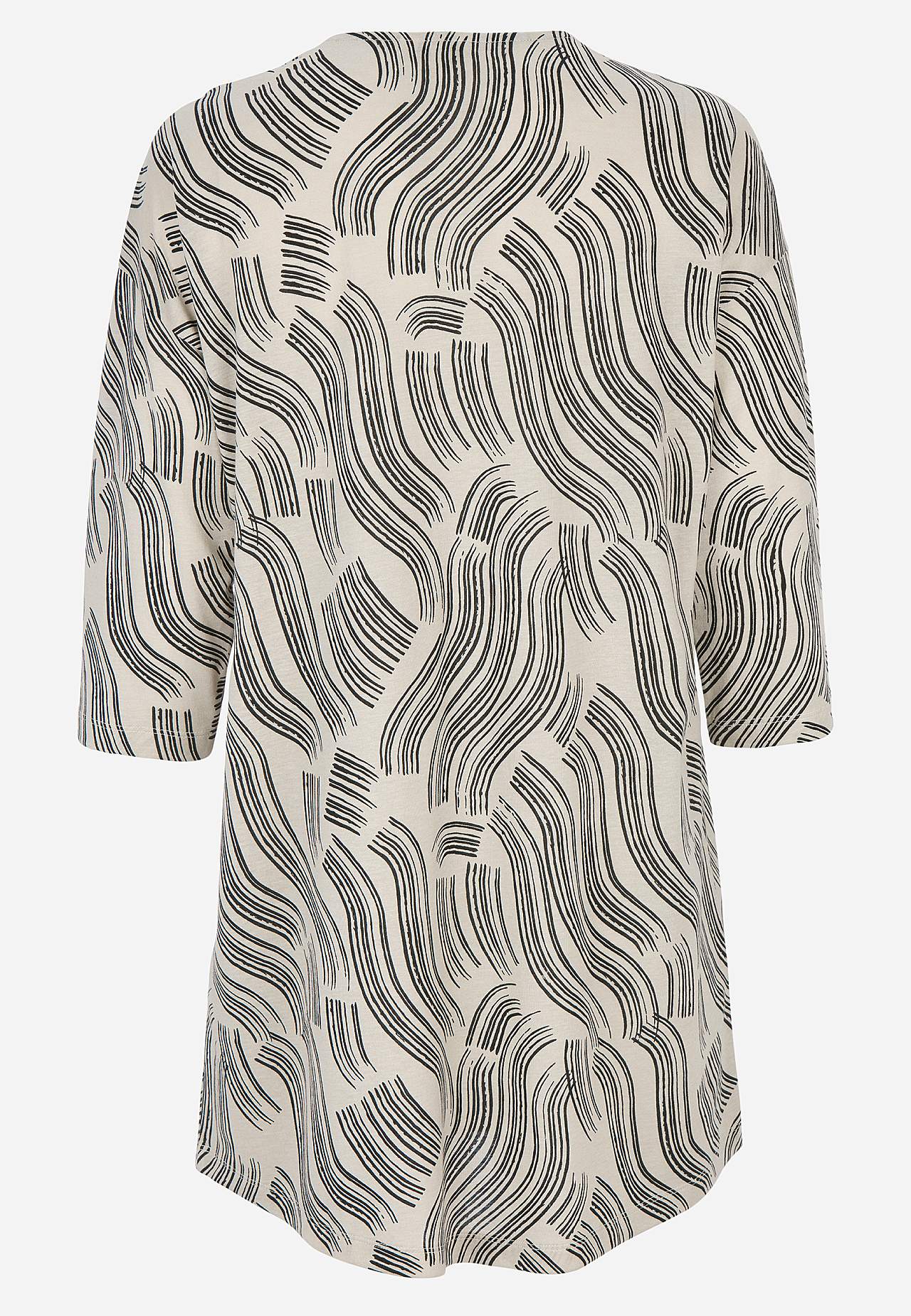 Měkká tunika ze směsi bavlny a viskózy s hezkou splývavosytí. Prostorný střih. Model do A. Výstřih do V s dekorativním plisé. Spadlé rameno. Rukávy s 3/4 délkou. Zaoblený lem. Délka se odvíjí od velikosti, cca 79-89 cm vzadu od ramene.