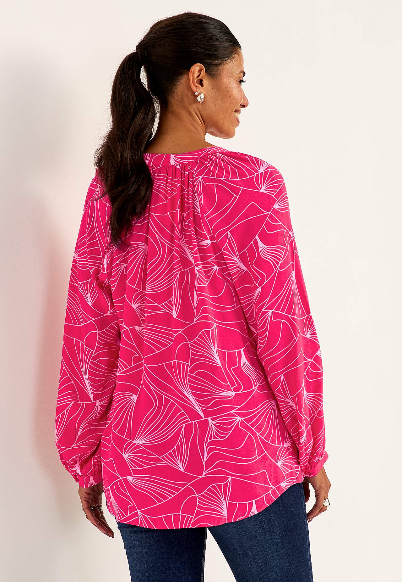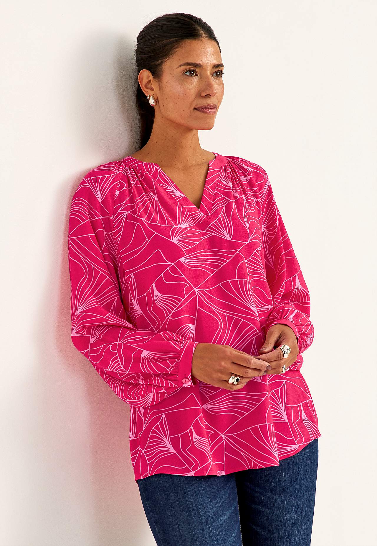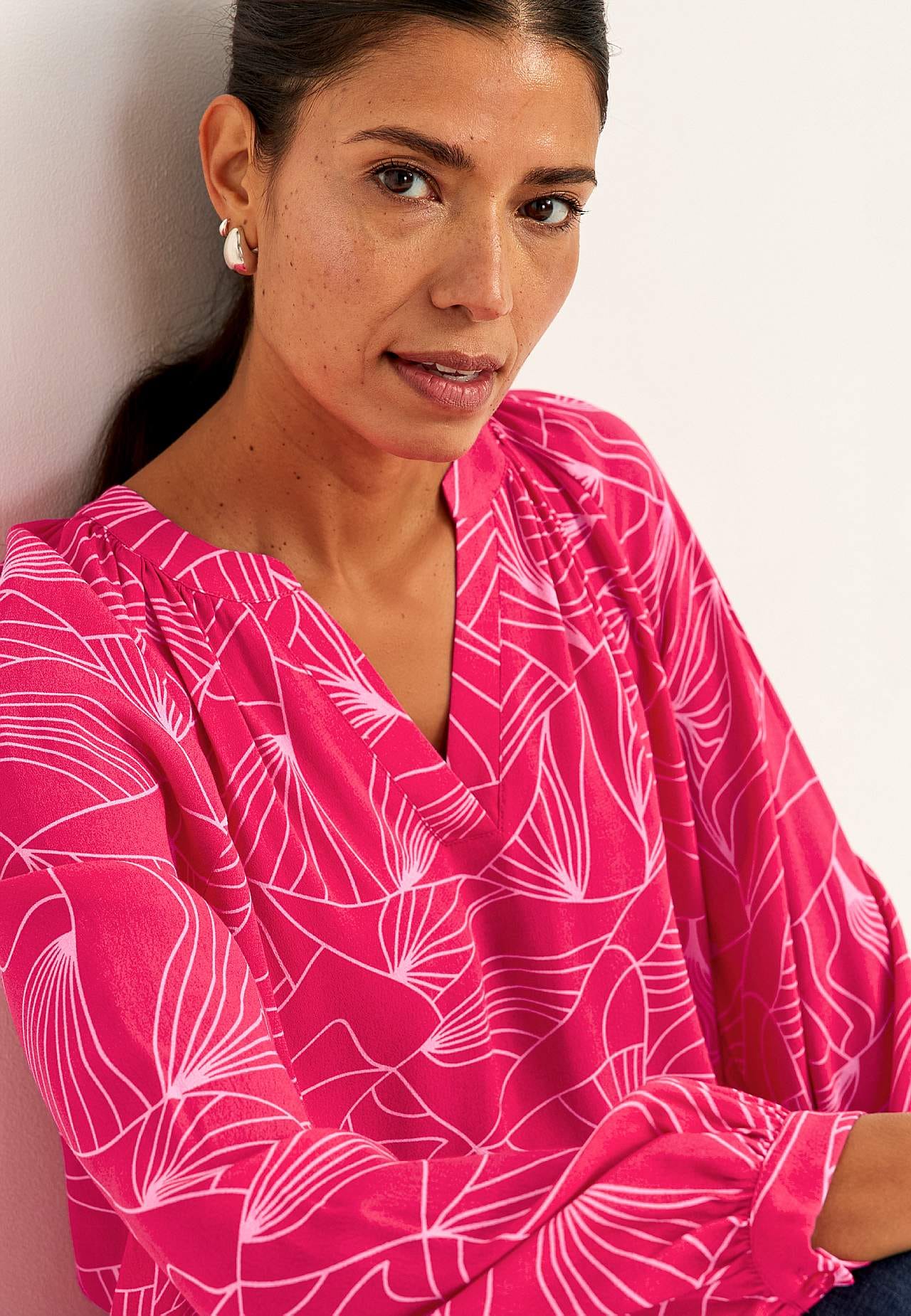 Tunika z viskózy s lehkou strukturou a hezkou splývavosytí. Krepový materiál s matným povrchem a jemnou strukturou. Měkký, splývavý a příjemný na dotek. Klasický střih s hezkou siluetou. Zaoblený krk s lehkým nabíráním a překrývaný výstřih do V. Jemně zakulacený a mírně prodloužený v zadní části lem. Vzadu sedlo. Délka se ... Přečtěte si více